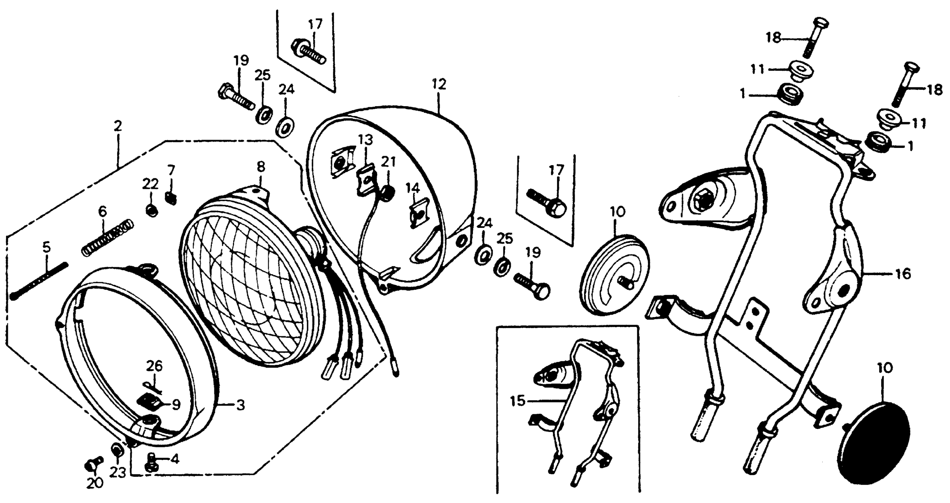 Honda CB125SA (76) MOTORCYCLE, JPN, VIN# CB125S-1300009 TO CB125S-1304255 HEADLIGHT 76-78 Diagram