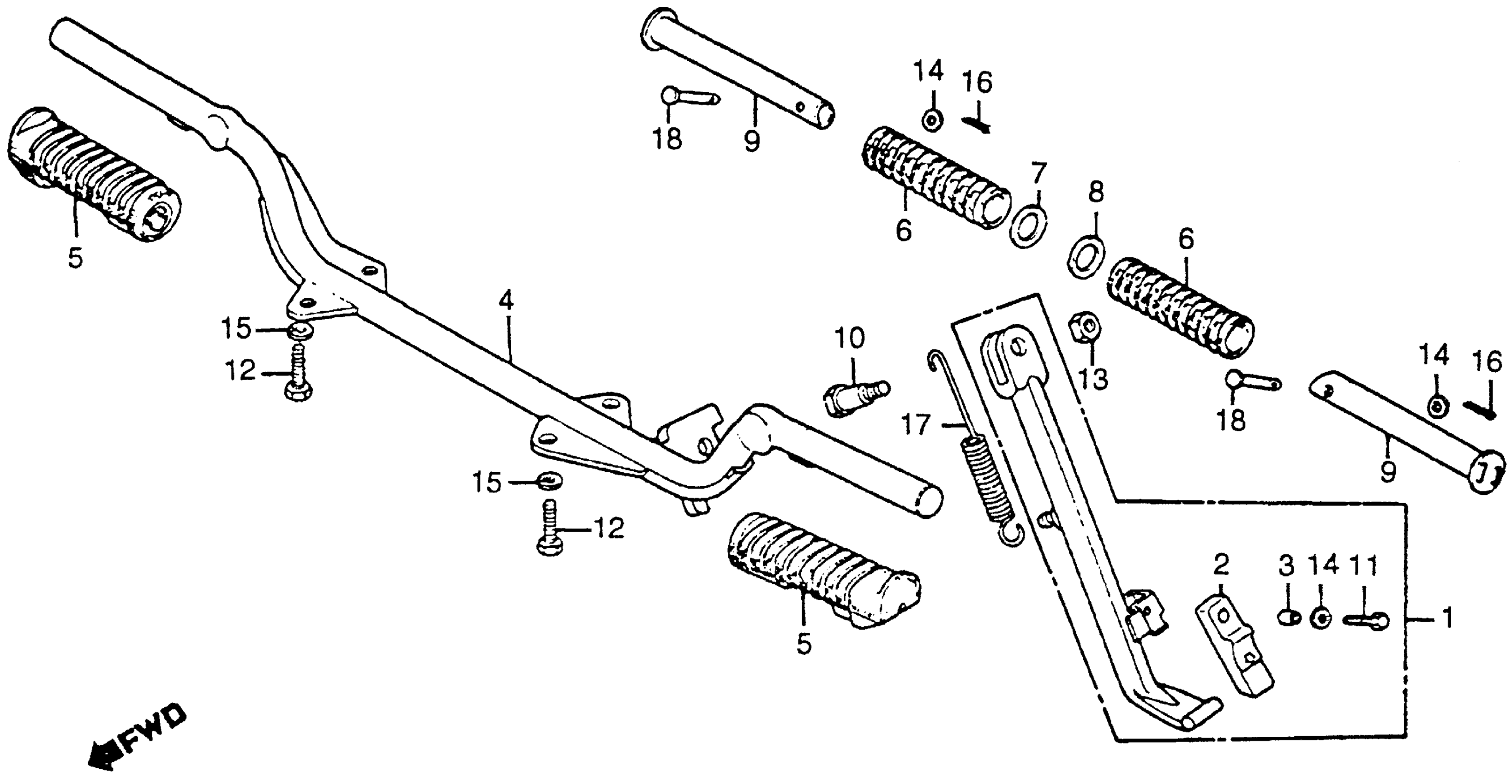Honda CB125SA (84) MOTORCYCLE, BRA, VIN# 9C2JC130-ER010001 SIDE STAND + FOOTPEGS Diagram