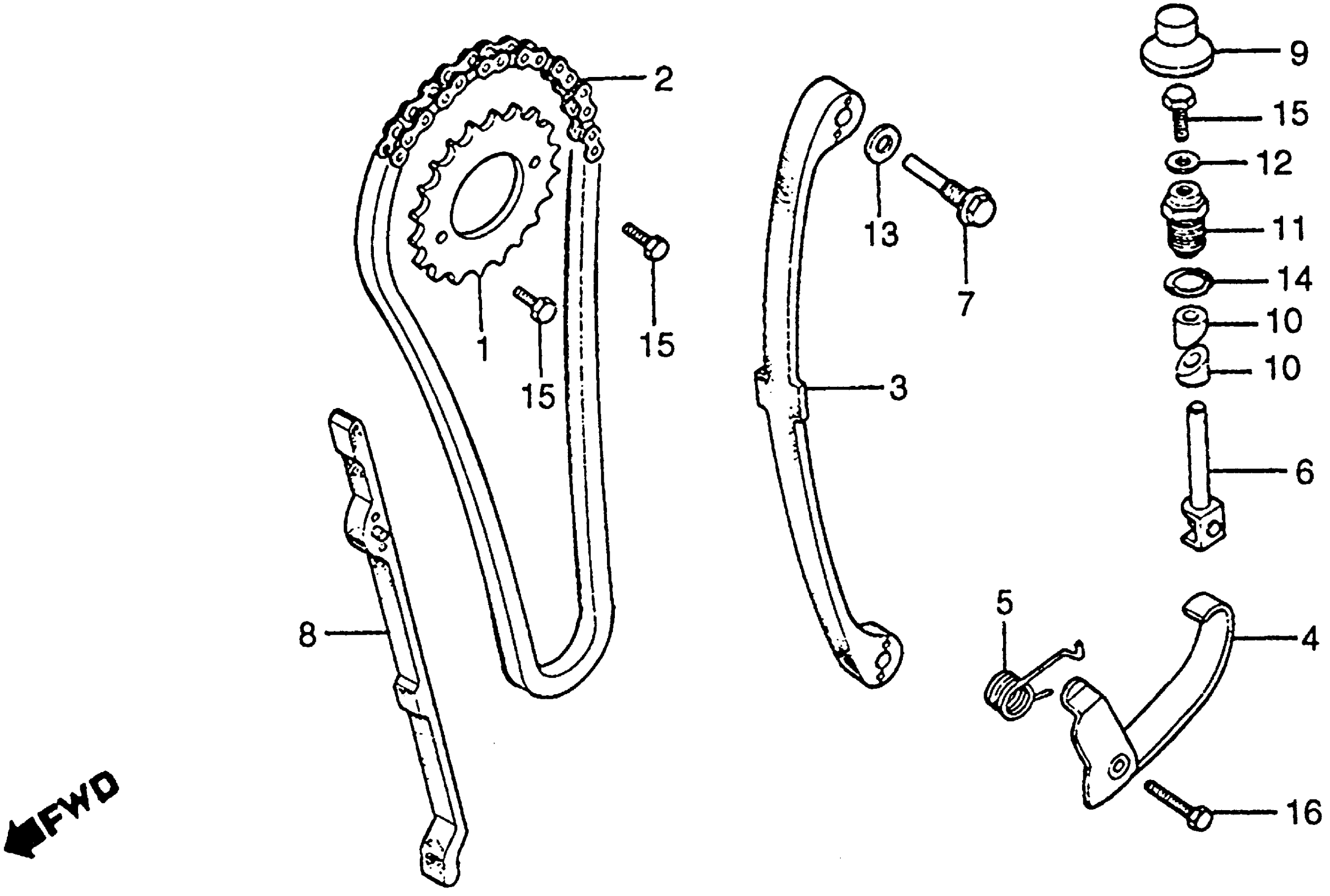 Honda CB125SA (85) MOTORCYCLE, BRA, VIN# 9C2JC130-FR100001 CAM CHAIN + TENSIONER Diagram