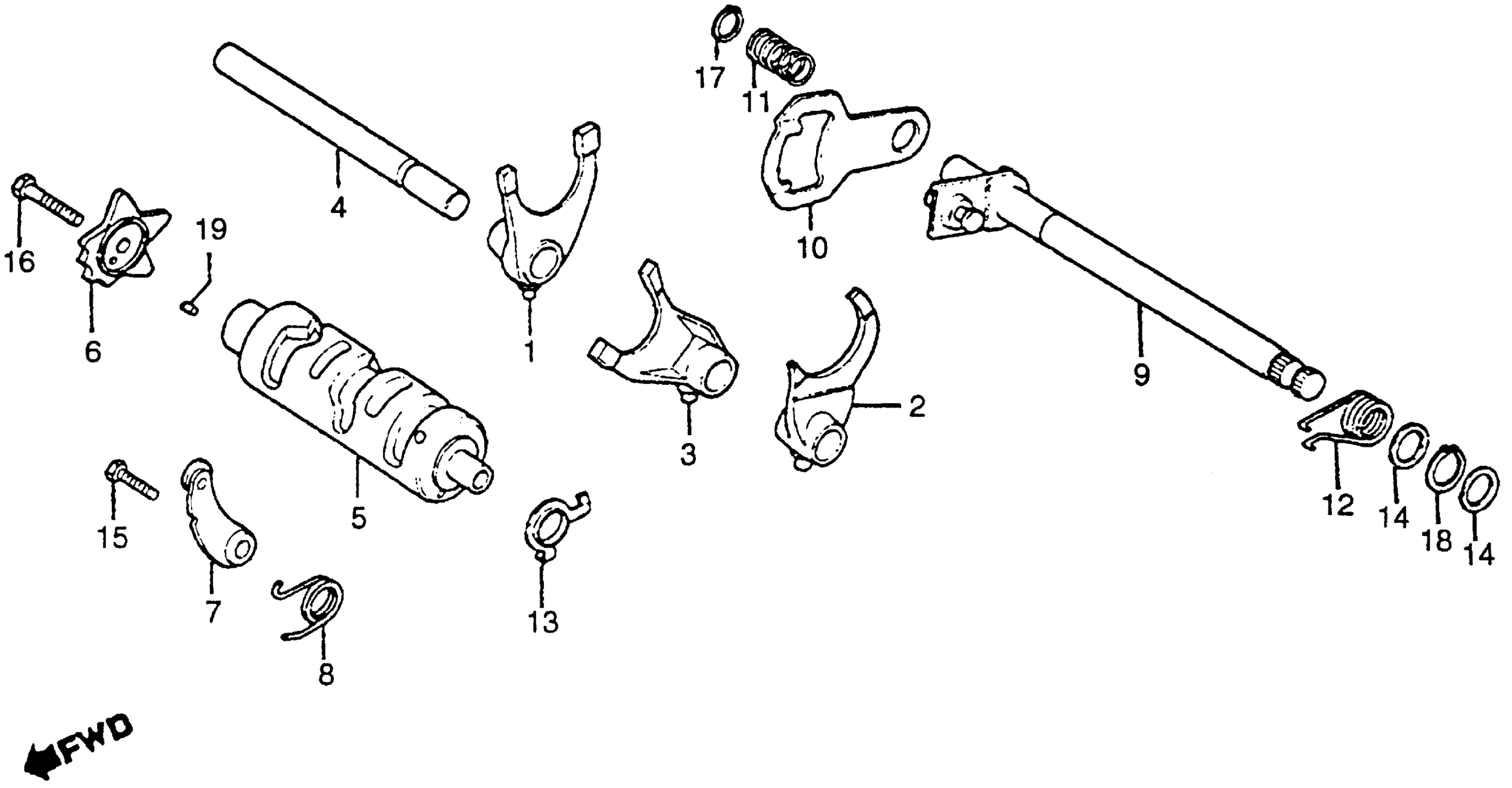 Honda CB125SA (85) MOTORCYCLE, BRA, VIN# 9C2JC130-FR100001 GEARSHIFT DRUM + GEARSHIFT SPINDLE Diagram