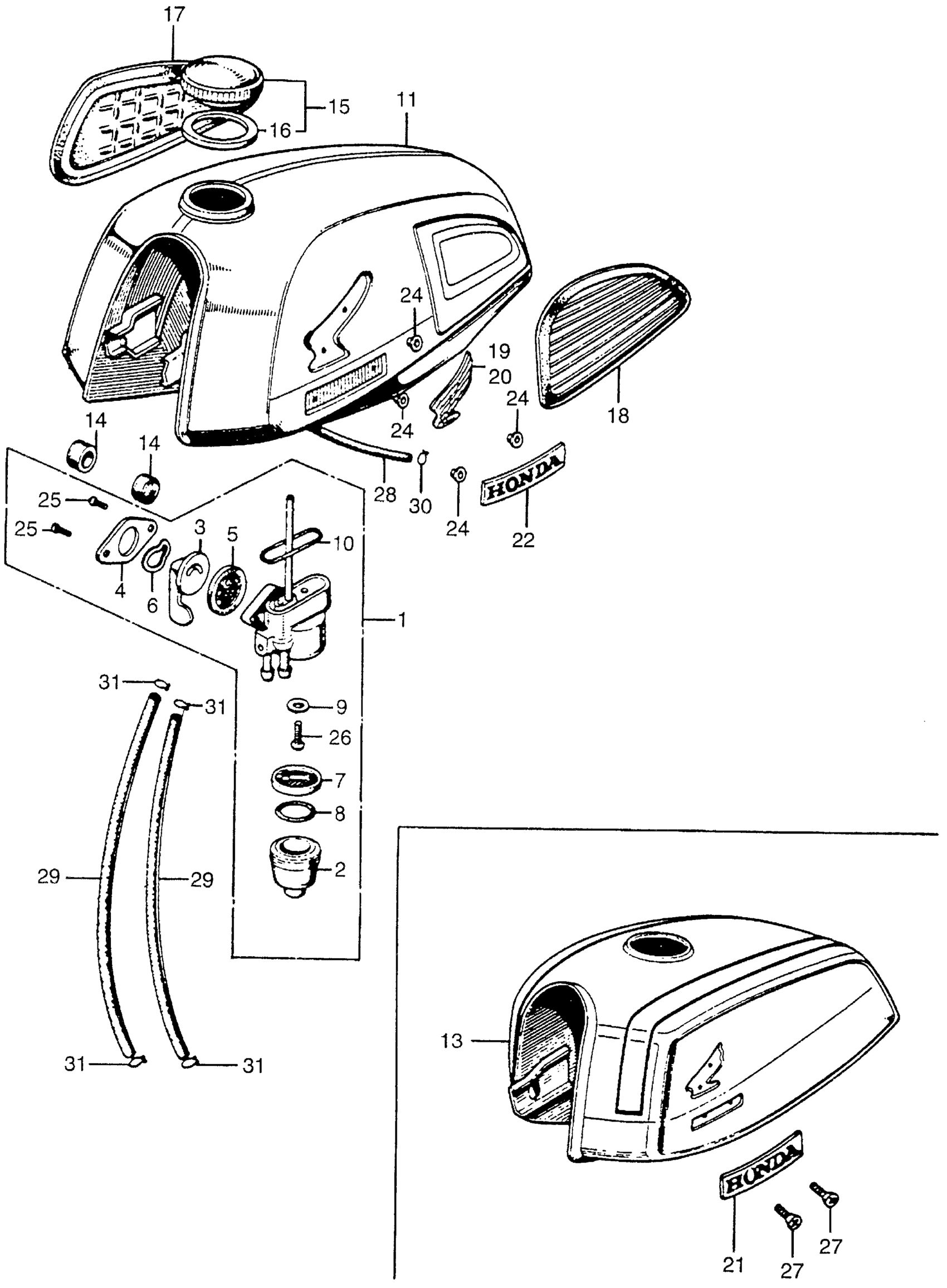 Honda CB175K3A MOTORCYCLE, JPN, VIN# CB175-4000001 CB/CL175FUEL TANK Diagram