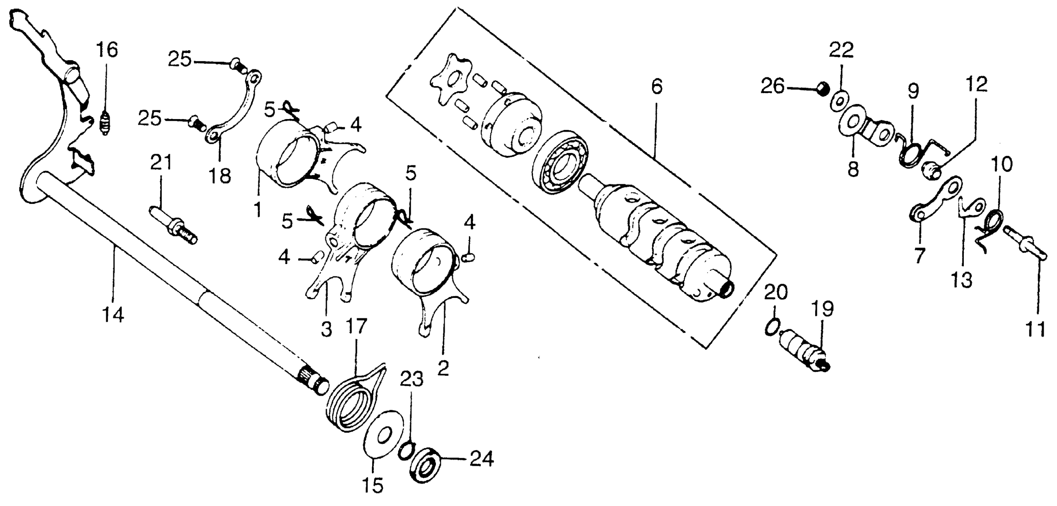 Honda CB200TA MOTORCYCLE, JPN, VIN# CB200T-2000001 GEARSHIFT FORK + DRUM Diagram