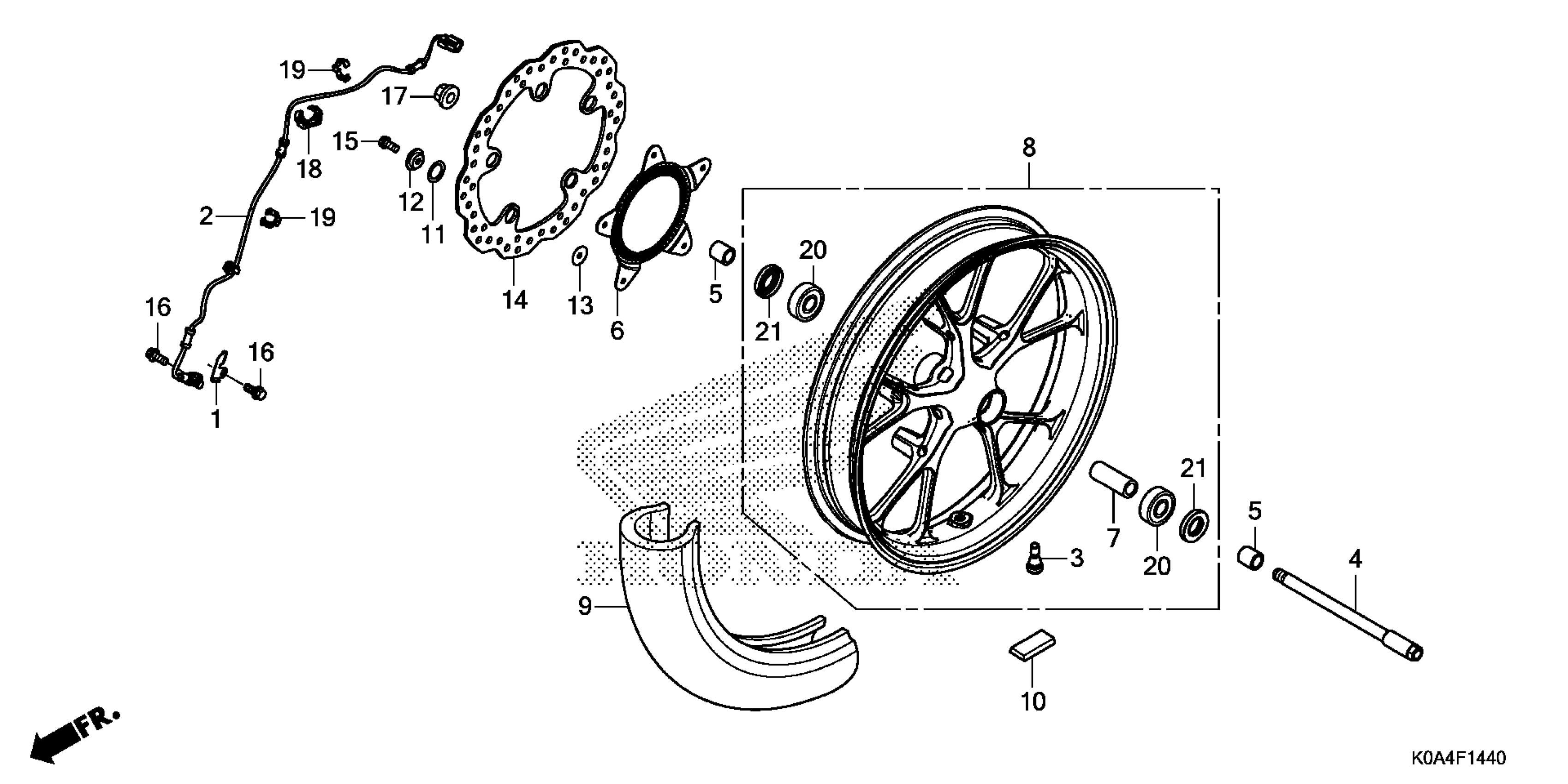 Honda CB300RAAC (19) MOTORCYCLE, THA, VIN# MLHNC554-K5000001 TO MLHNC554-K5099999 FRONT WHEEL Diagram