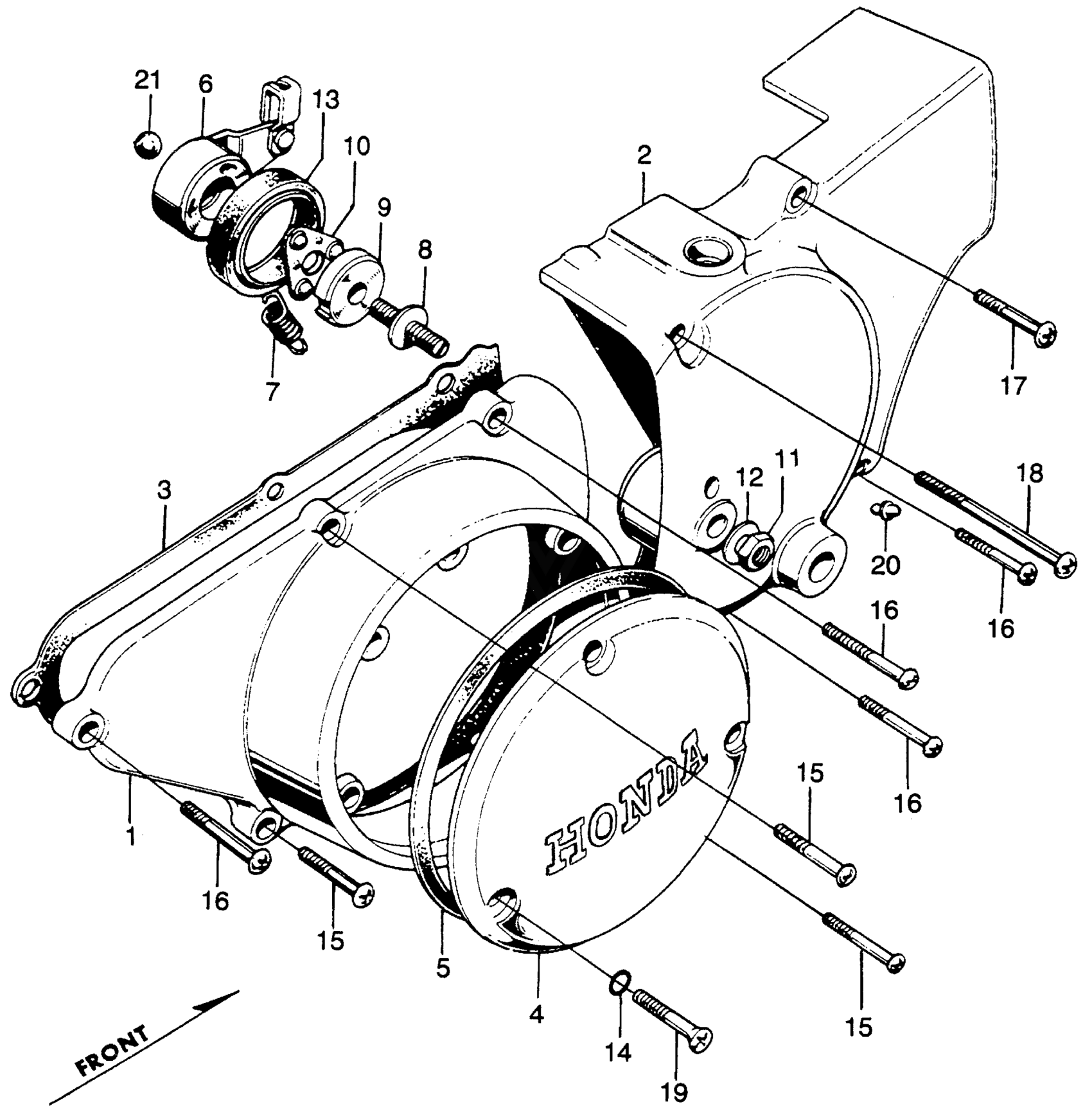 Honda CB350A MOTORCYCLE, JPN, VIN# CB350-1000001 LEFT CRANKCASE COVER + REARCOVER Diagram