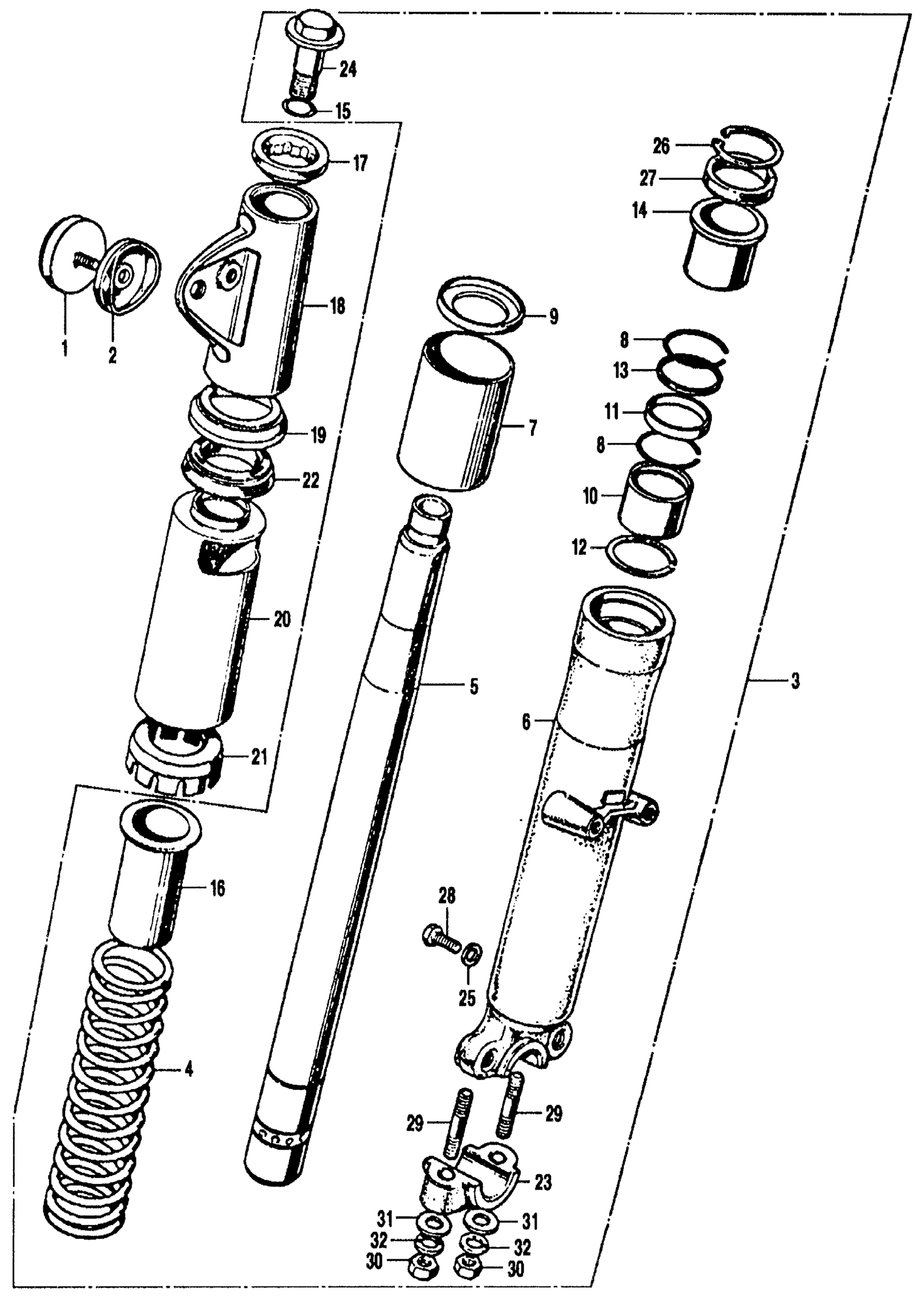 Honda CB350K2A MOTORCYCLE, JPN, VIN# CB350-2000001 CB RIGHT FRONT FORK K2 Diagram