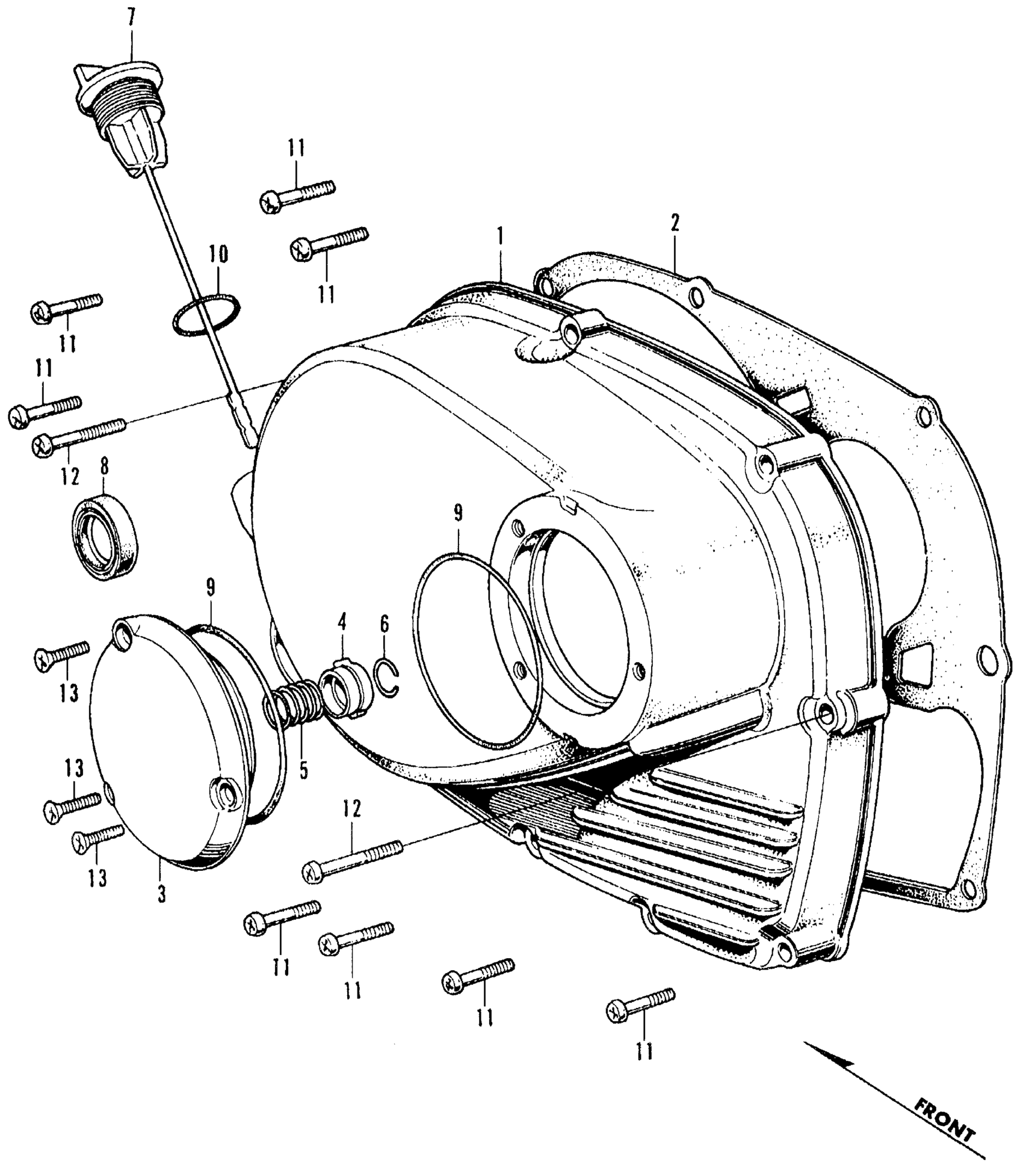 Honda CB350K2A MOTORCYCLE, JPN, VIN# CB350-2000001 RIGHT CRANKCASE COVER Diagram