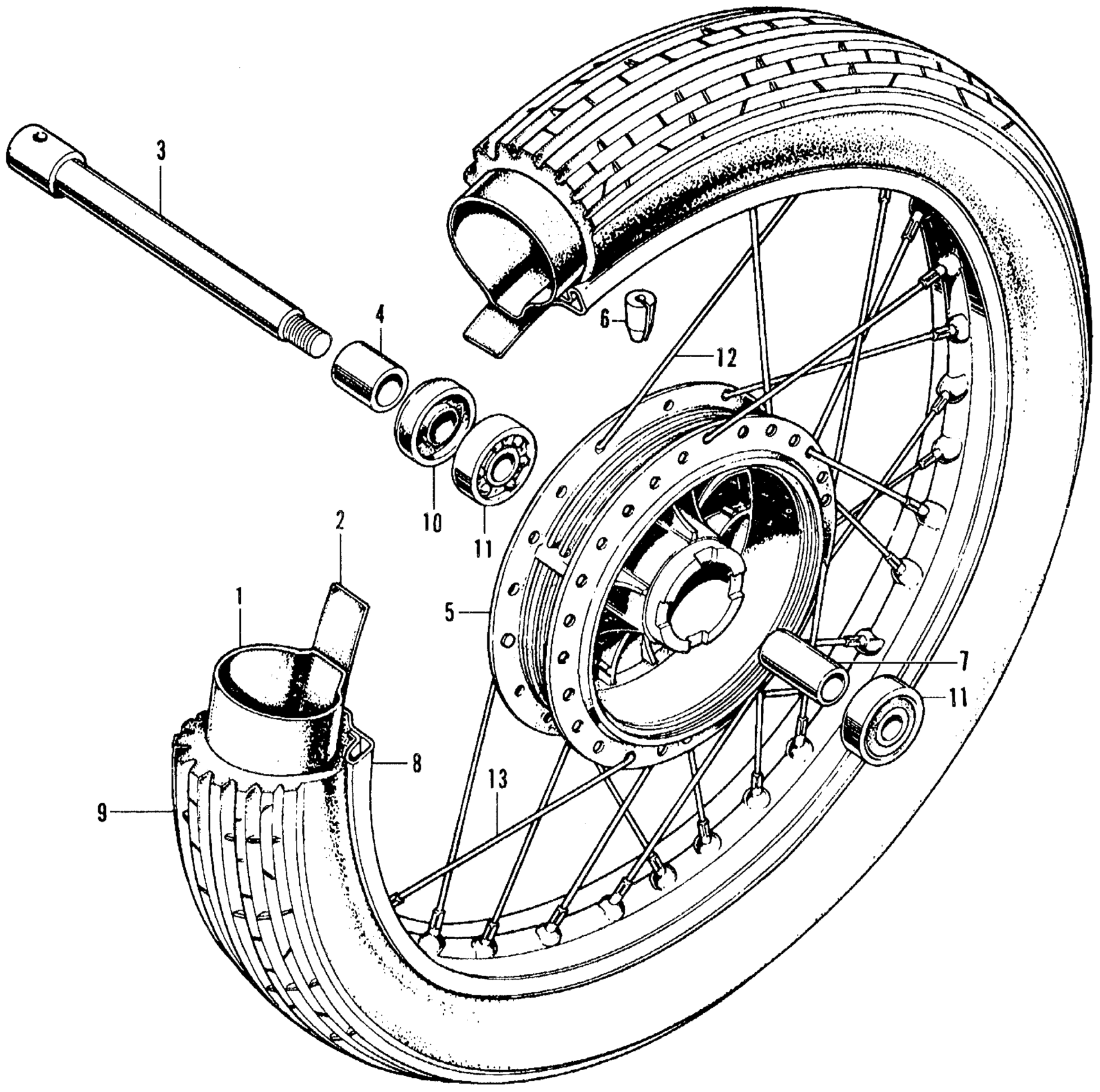 Honda CB350K3A MOTORCYCLE, JPN, VIN# CB350-3000001 FRONT WHEEL + AXLE Diagram