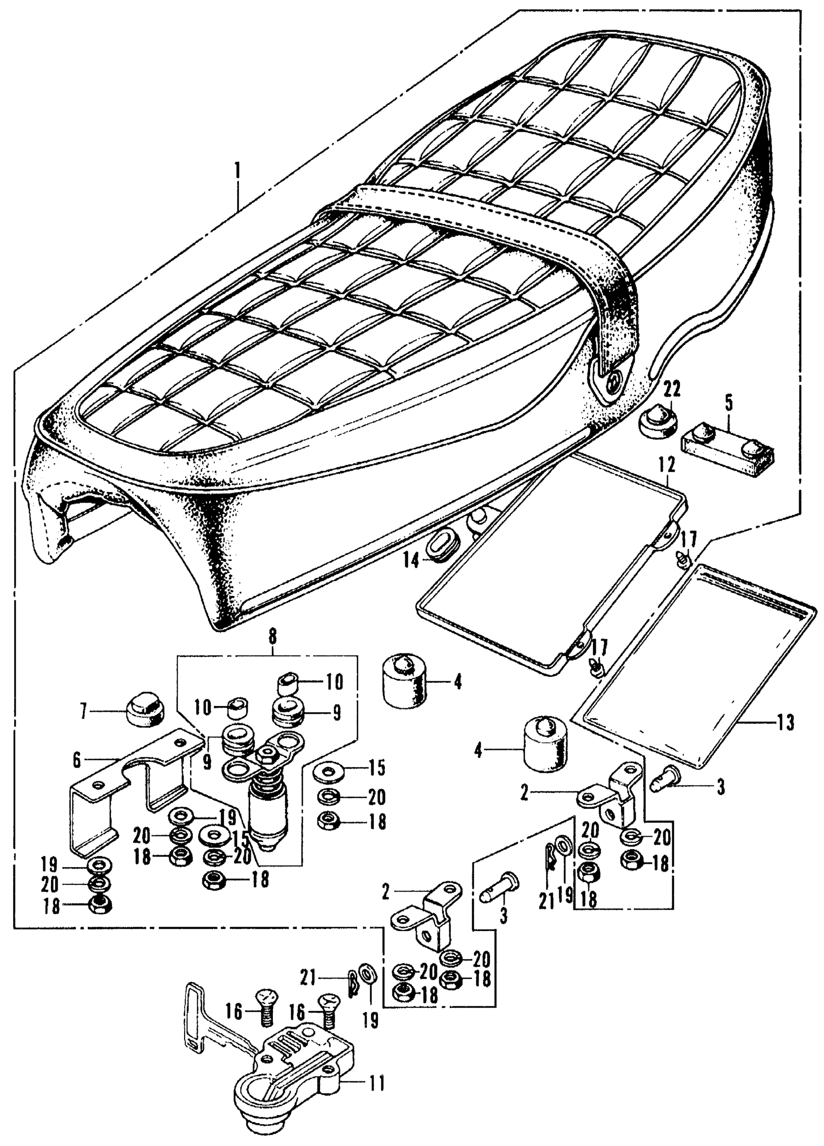 Honda CB350K4A MOTORCYCLE, JPN, VIN# CB350-4000001 SEAT K4 Diagram