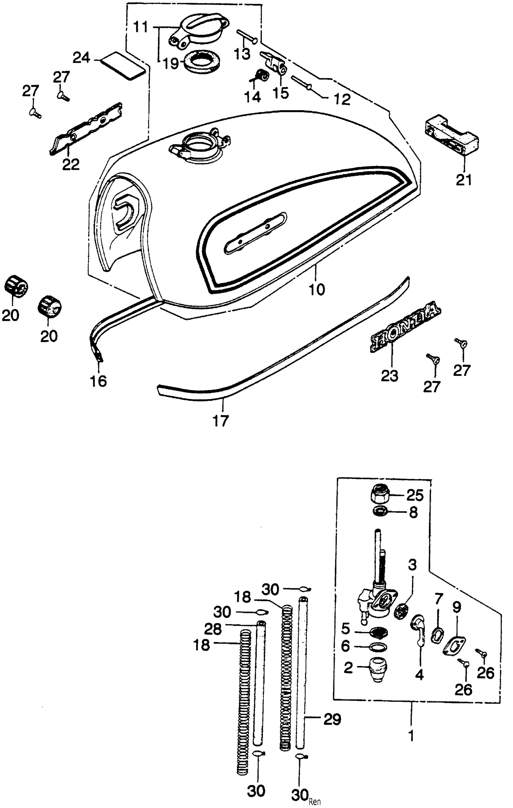 Honda CB360A MOTORCYCLE, JPN, VIN# CB360-1000001 FUEL TANK Diagram