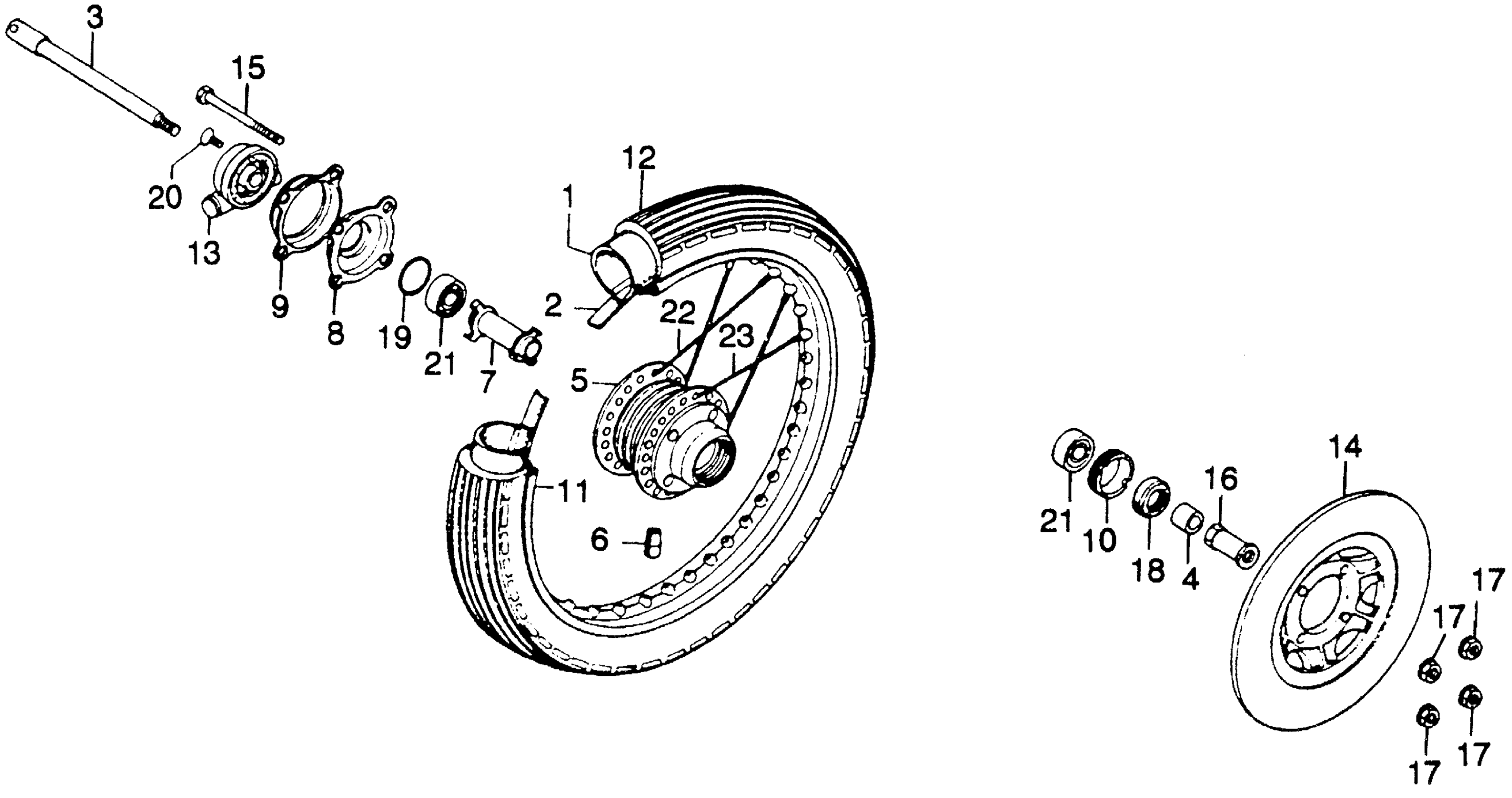 Honda CB360TA (76) MOTORCYCLE, JPN, VIN# CB360-2200001 FRONT WHEEL + DISC Diagram