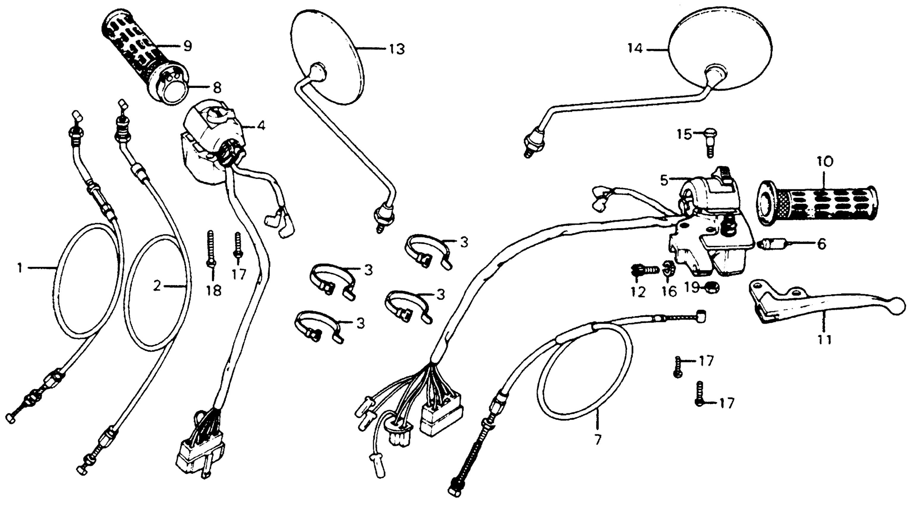 Honda CB400AA (78) HAWK HONDAMATIC, JPN, VIN# CB400A-2000015 HANDLE LEVER + SWITCH + CABLE Diagram