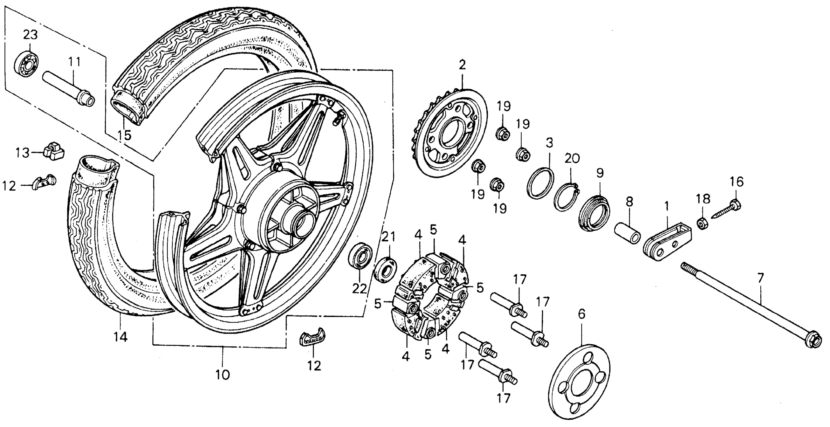 Honda CB400AA (78) HAWK HONDAMATIC, JPN, VIN# CB400A-2000015 REAR WHEEL Diagram