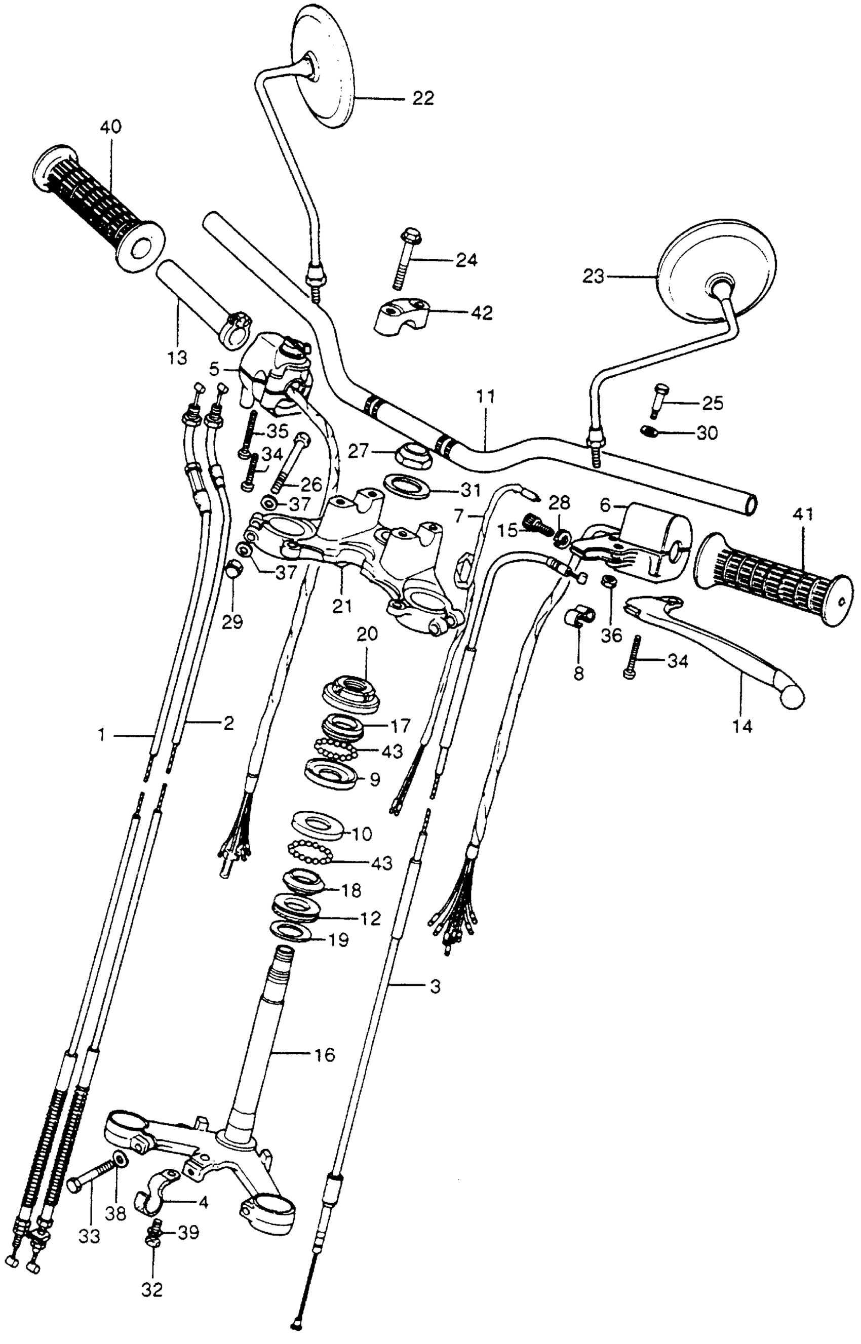 Honda CB400FA (77) SUPER SPORT 400 FOUR, JPN, VIN# CB400F-2100001 TO CB400F-2104166 HANDLEBAR + STEERING STEM + CABLES Diagram