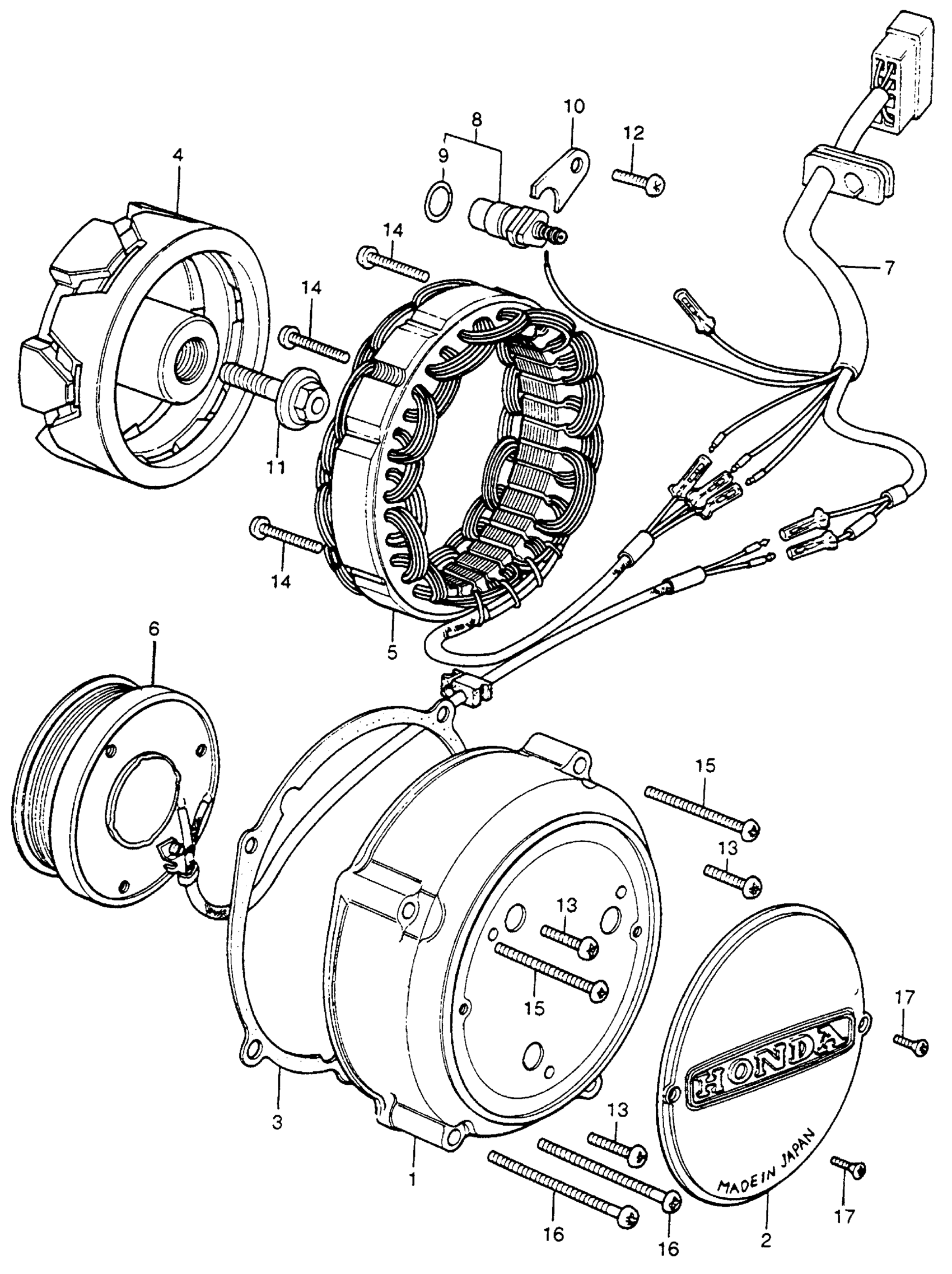 Honda CB400FA MOTORCYCLE, JPN, VIN# CB400F-1000006 TO CB400F-1038492 ALTERNATOR Diagram