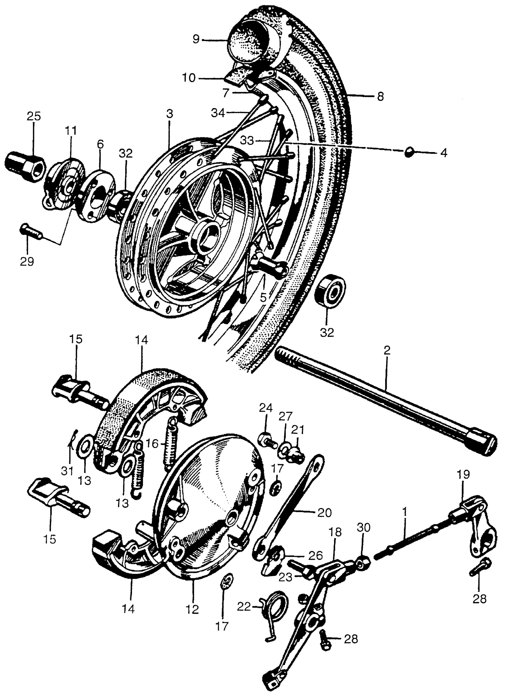 Honda CB450A MOTORCYCLE, JPN, VIN# CB450-1000001 FRONT WHEEL + FRONT BRAKES Diagram