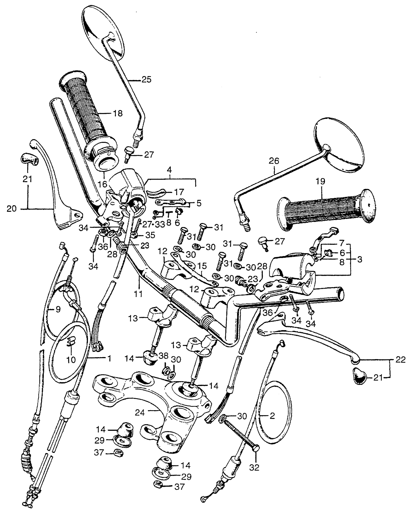Honda CB450K1A MOTORCYCLE, JPN, VIN# CB450-3000001 TO CB450-3008955 HANDLEBAR Diagram