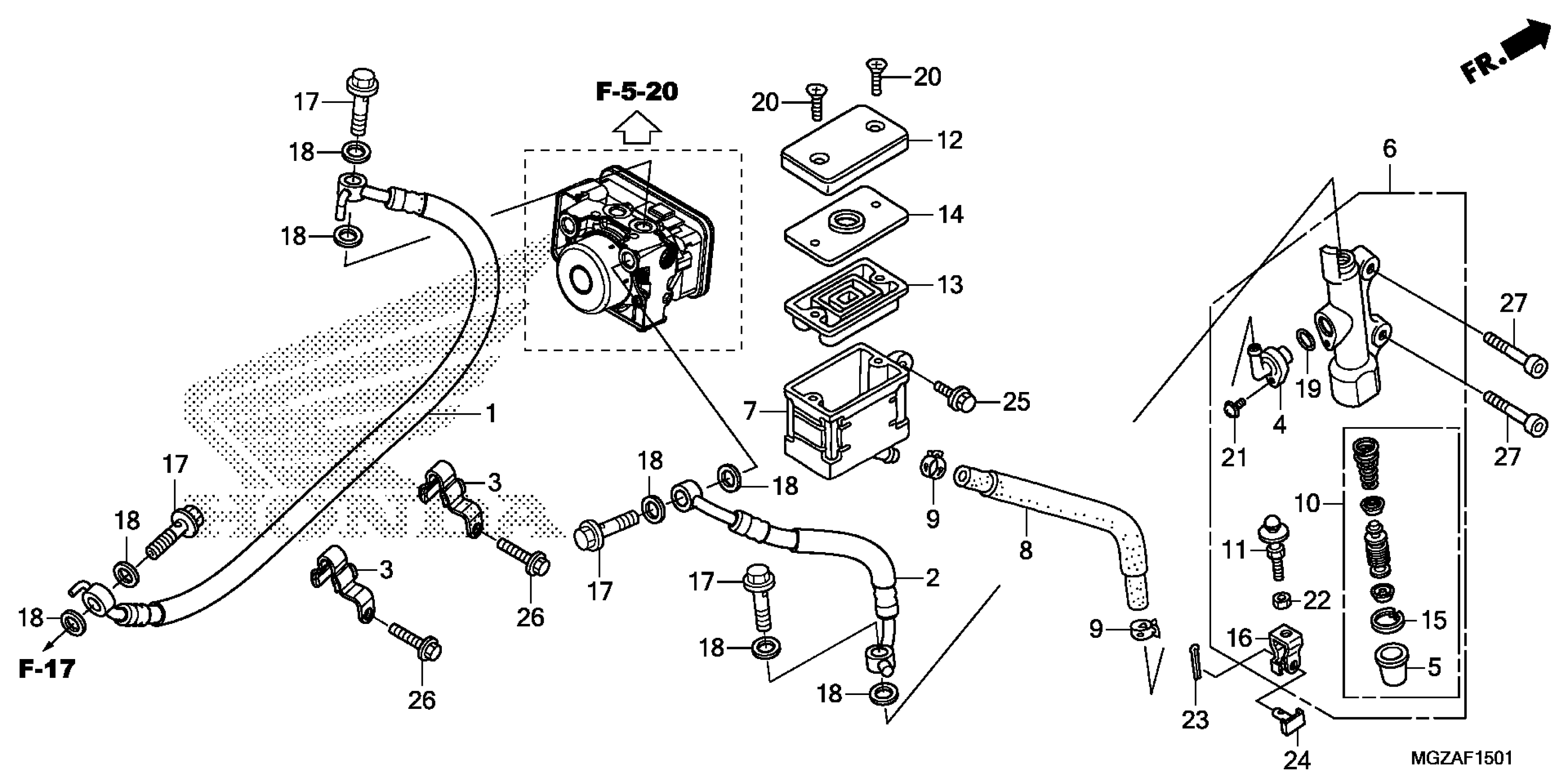 Honda CB500FA2AC (15) MOTORCYCLE, THA, VIN# MLHPC450-F5200001 REAR BRAKE MASTER CYLINDER (ABS) Diagram