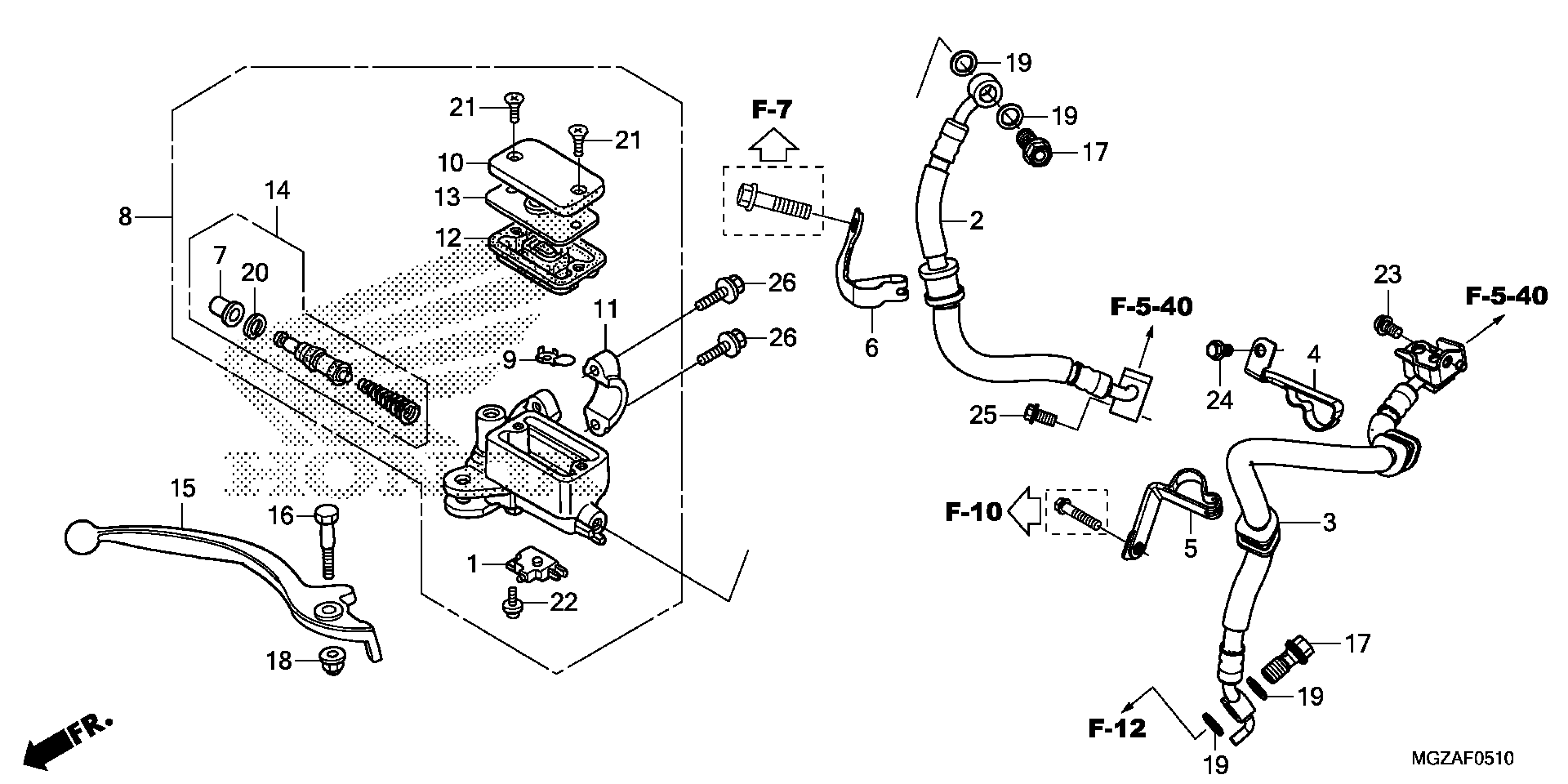 Honda CB500FAAC (14) MOTORCYCLE, THA, VIN# MLHPC450-E5100001 TO MLHPC450-E5199999 FRONT BRAKE MASTER CYLINDER (ABS) Diagram