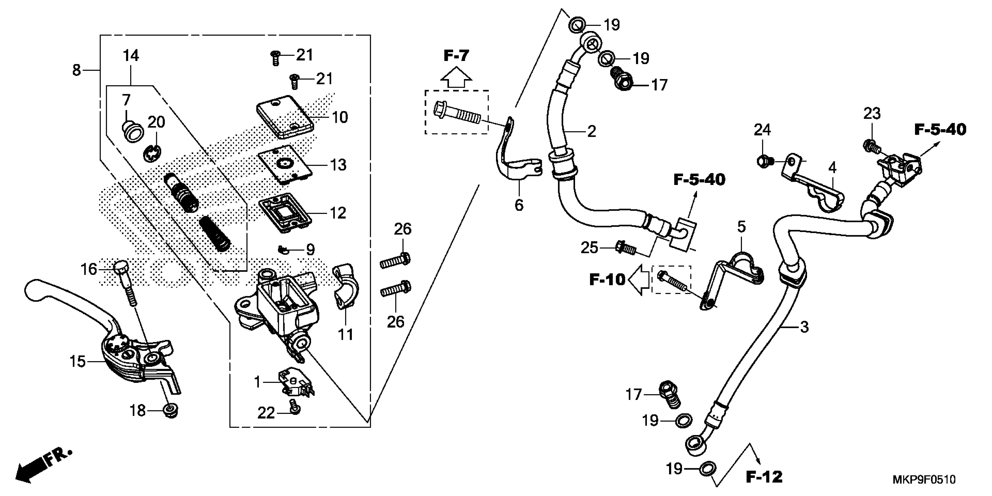 Honda CB500FAAC (19) MOTORCYCLE, THA, VIN# MLHPC635-K5000001 TO MLHPC635-K5099999 FRONT BRAKE MASTER CYLINDER (2) Diagram