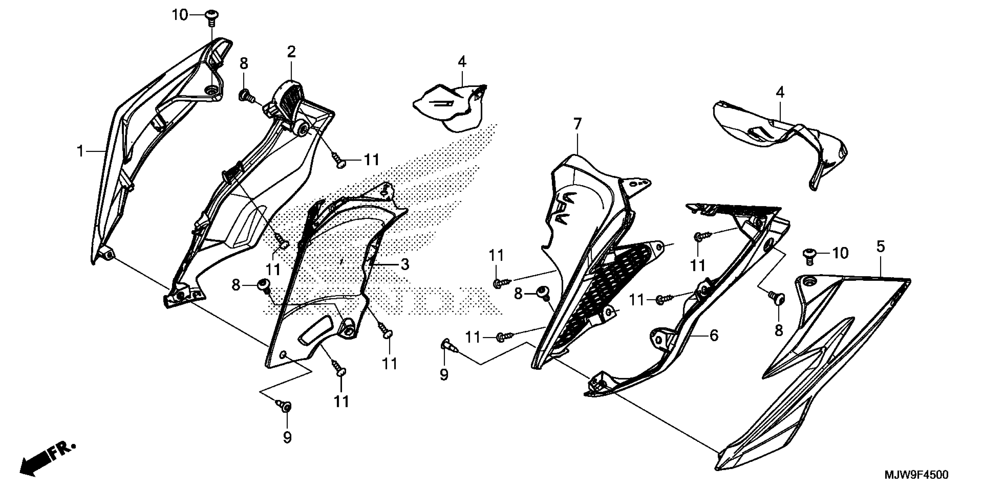 Honda CB500FAC (18) MOTORCYCLE, THA, VIN# MLHPC451-J5500001 MIDDLE COWL Diagram