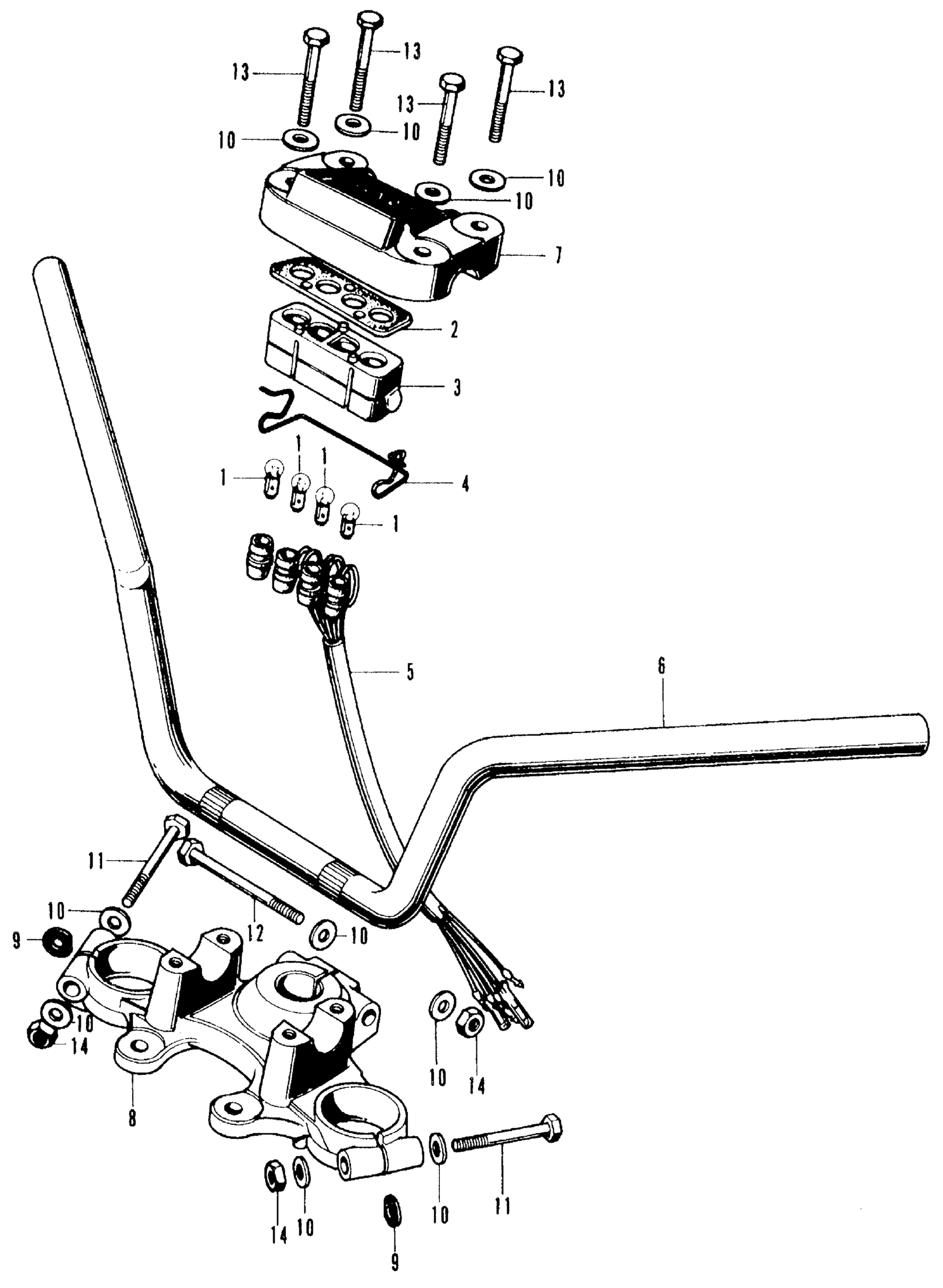 Honda CB500K1A MOTORCYCLE, JPN, VIN# CB500-2000001 HANDLEBAR + TOP BRIDGE Diagram