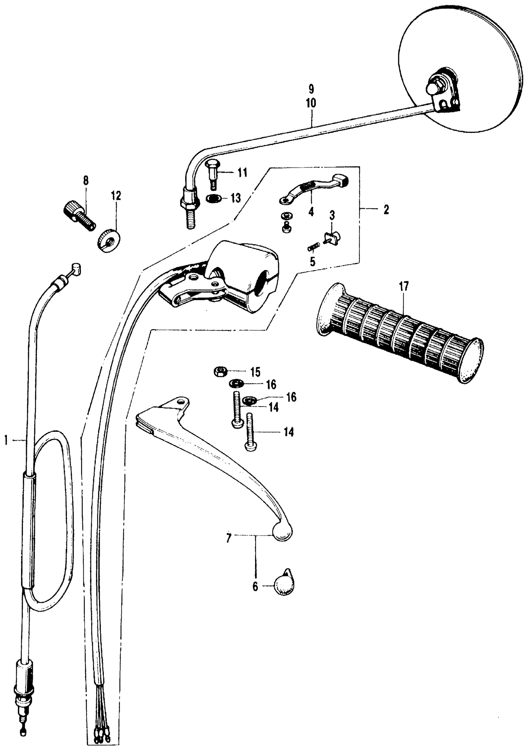 Honda CB500K1A MOTORCYCLE, JPN, VIN# CB500-2000001 LEFT HANDLE SWITCH + CABLE Diagram