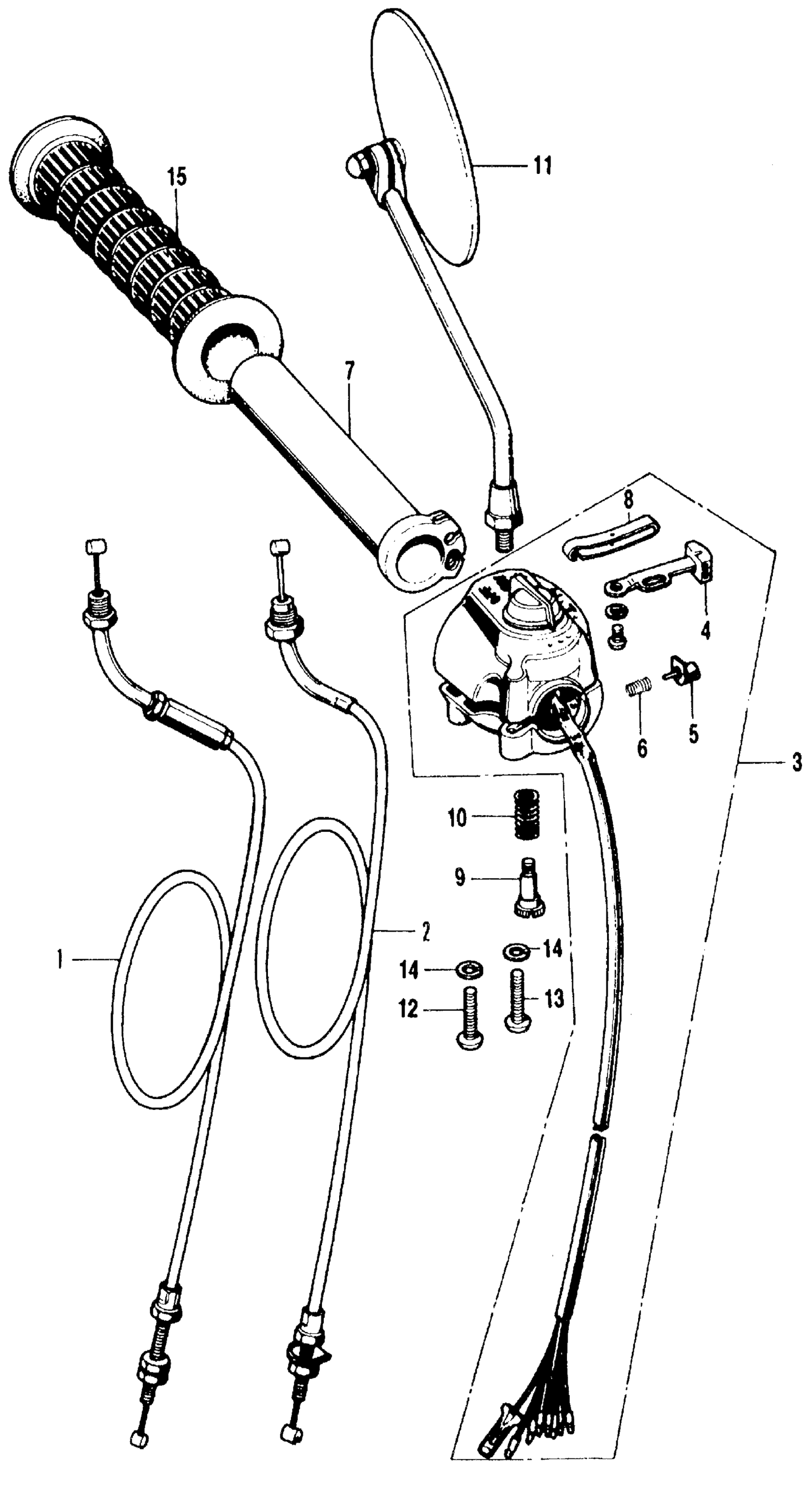 Honda CB500K1A MOTORCYCLE, JPN, VIN# CB500-2000001 RIGHT HANDLE SWITCH + CABLE Diagram