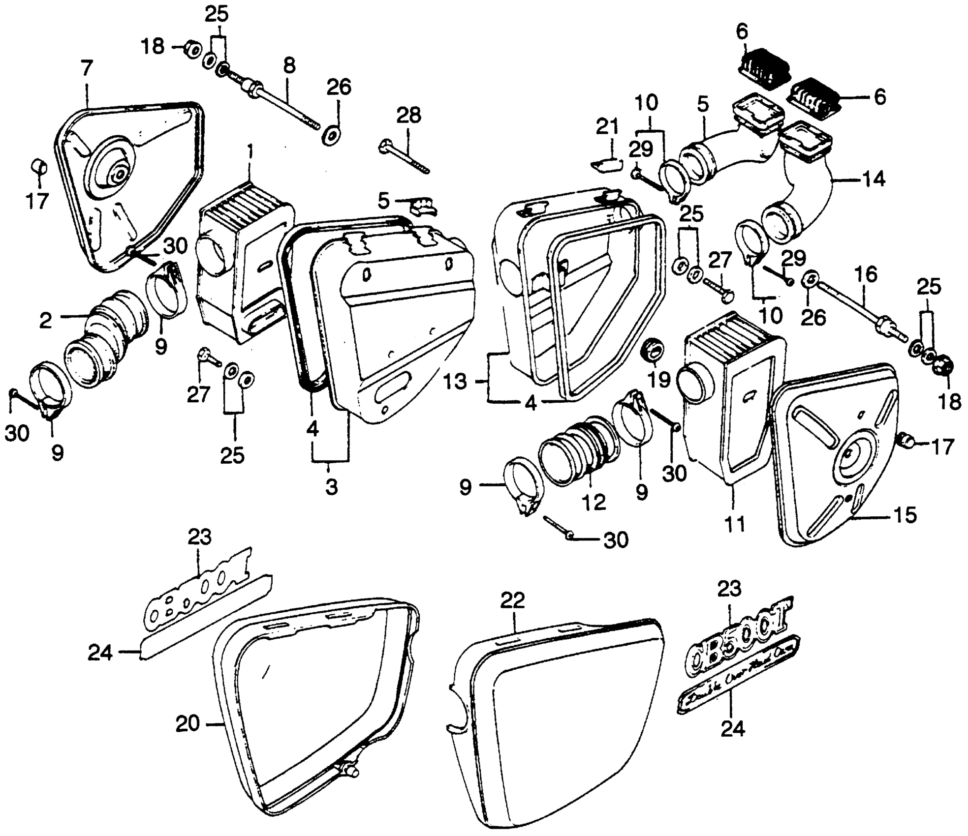 Honda CB500TA (76) 500 TWIN DOHC, JPN, VIN# CB500T-2000001 AIR CLEANER + AIR CLEANER COVER Diagram