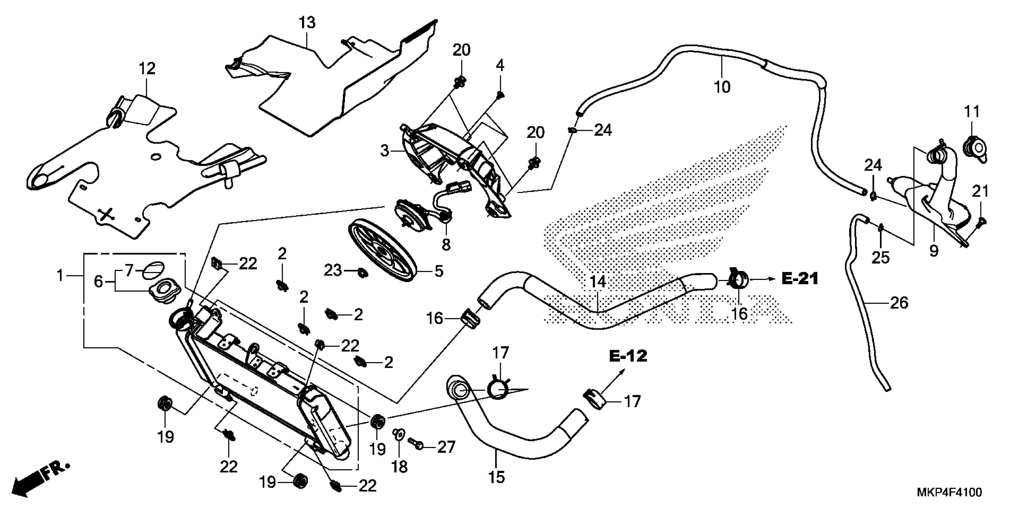 Honda CB500XAC (20) MOTORCYCLE, THA, VIN# MLHPC641-L5100001 TO MLHPC641-L5199999 RADIATOR Diagram