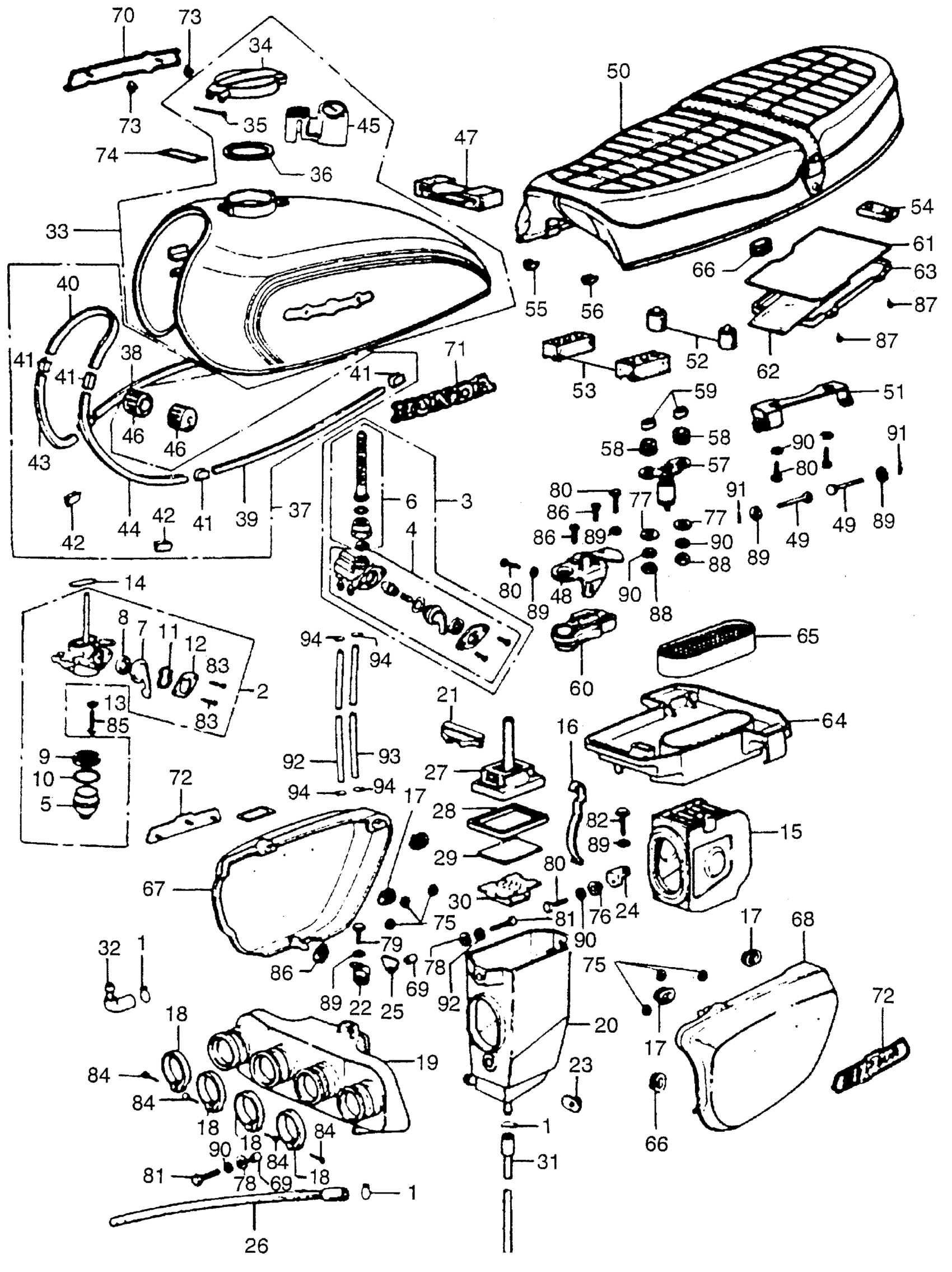 Honda CB550A MOTORCYCLE, JPN, VIN# CB550K-1000001 FUEL TANK + AIR CLEANER Diagram