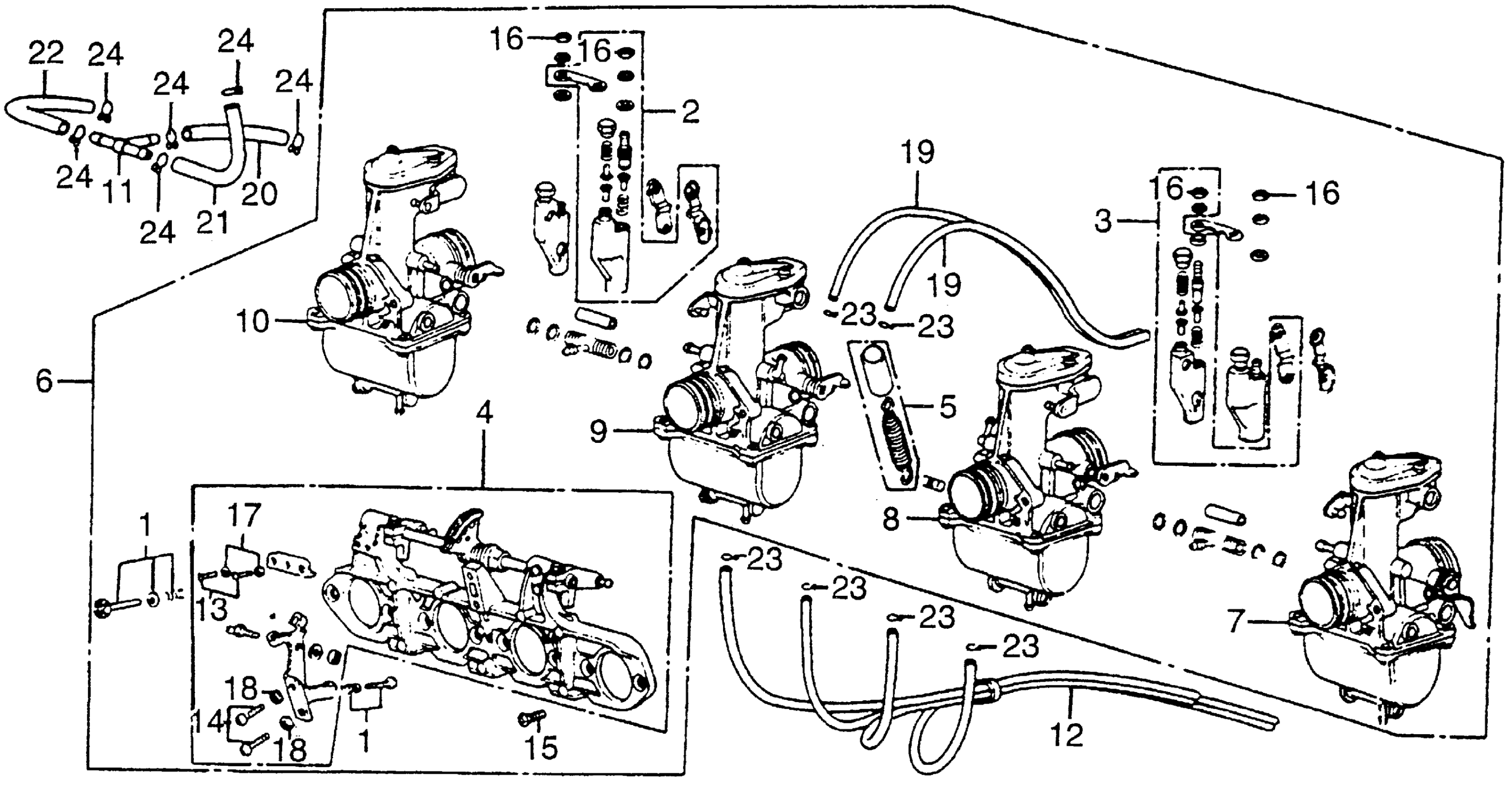 Honda CB550FA (77) SUPER SPORT 550 FOUR, JPN, VIN# CB550F-2100001 TO CB550F-2114871 CARBURETOR Diagram