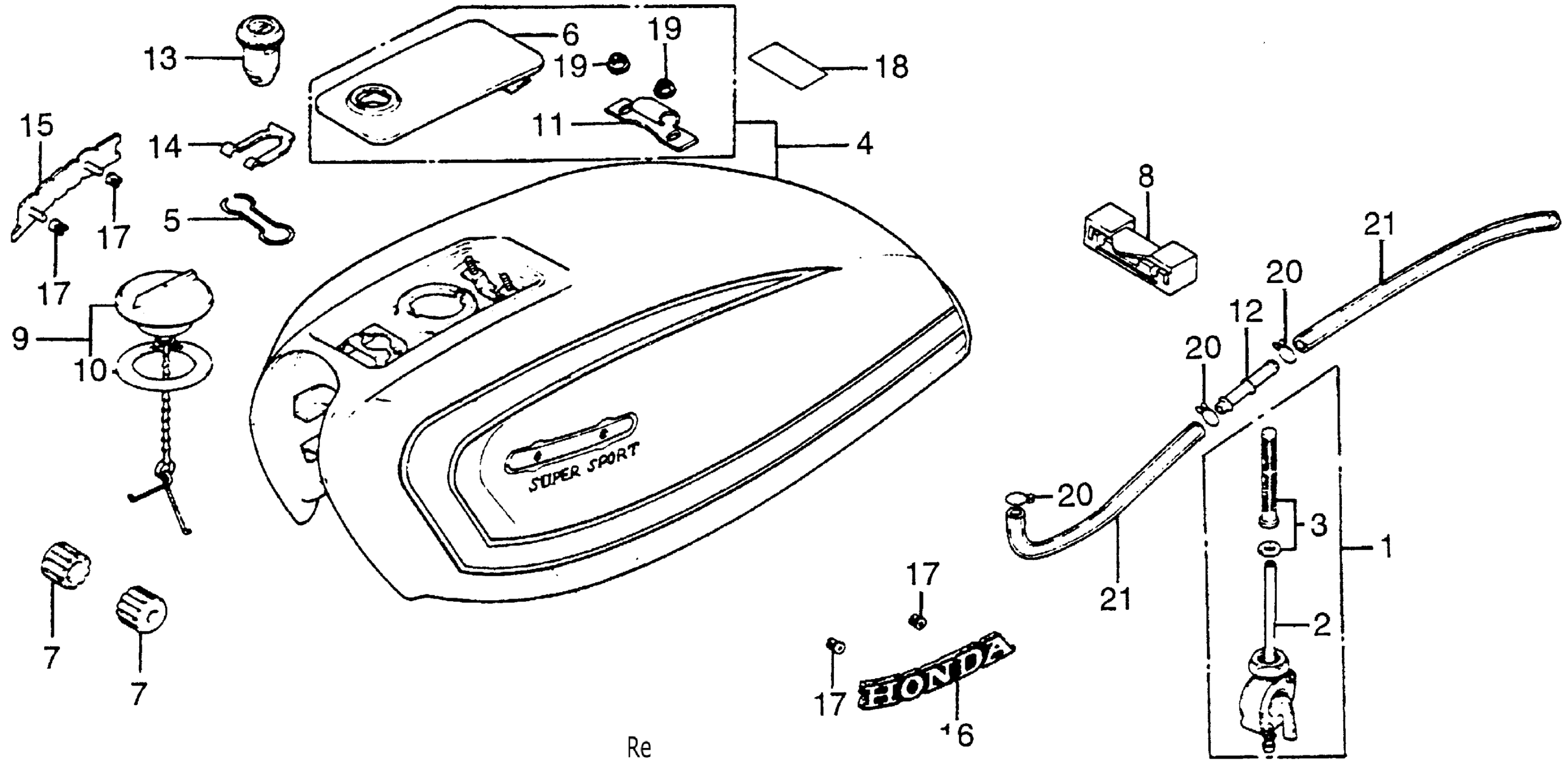 Honda CB550FA (77) SUPER SPORT 550 FOUR, JPN, VIN# CB550F-2100001 TO CB550F-2114871 FUEL TANK Diagram