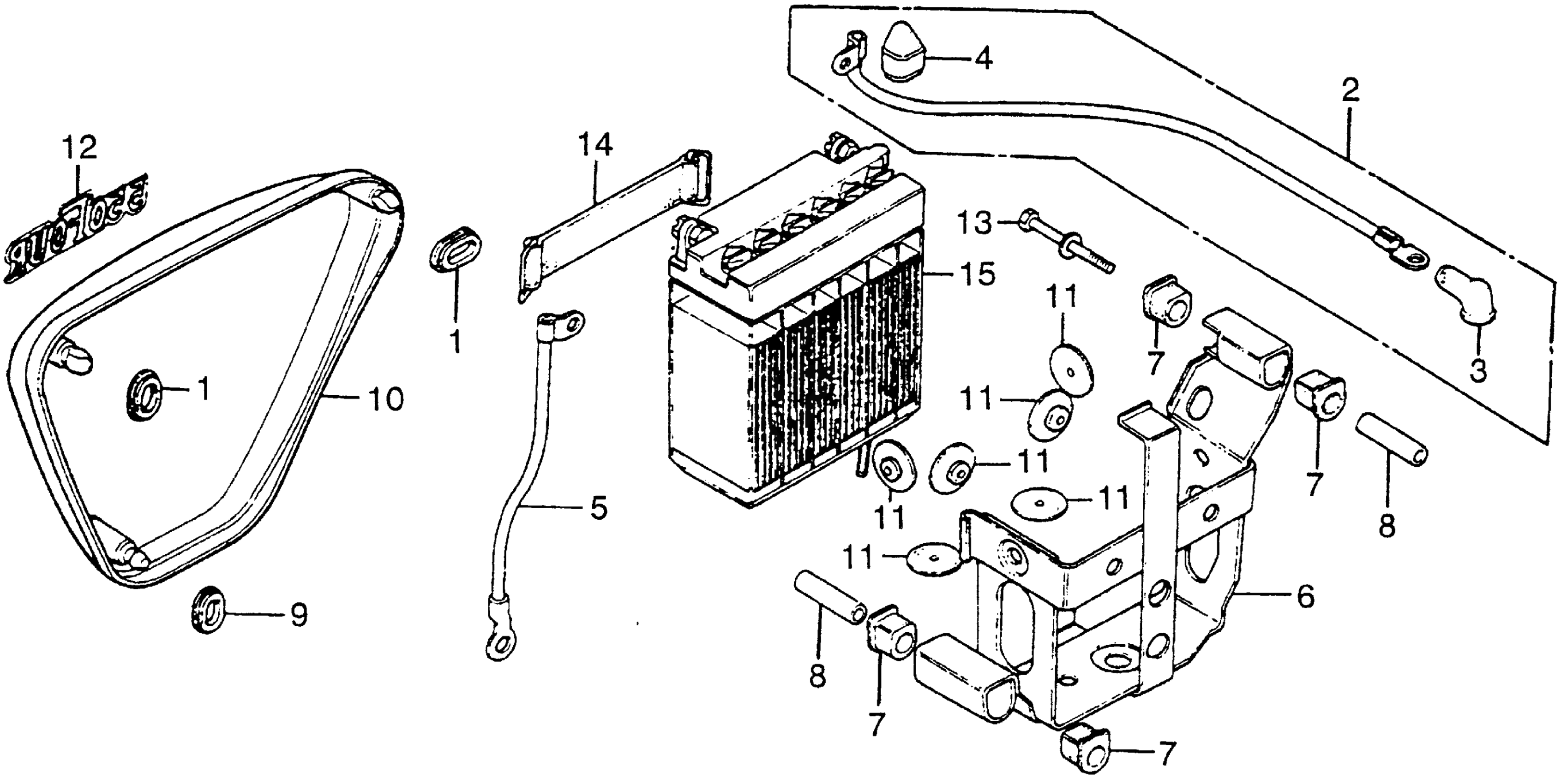 Honda CB550FA (77) SUPER SPORT 550 FOUR, JPN, VIN# CB550F-2100001 TO CB550F-2114871 RIGHT SIDE COVER + BATTERY Diagram