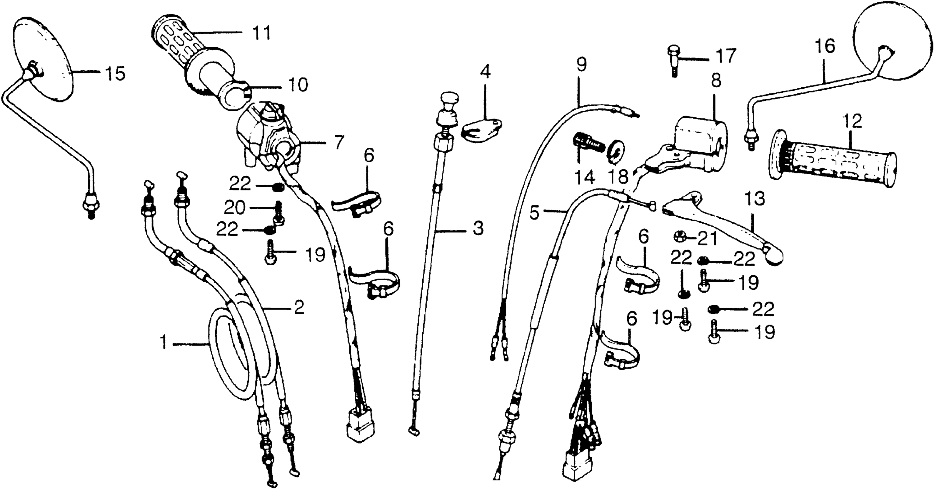 Honda CB550KA (78) 550 FOUR K, JPN, VIN# CB550K-2100001 TO CB550K-2122082 HANDLE LEVER + SWITCH + CABLES Diagram