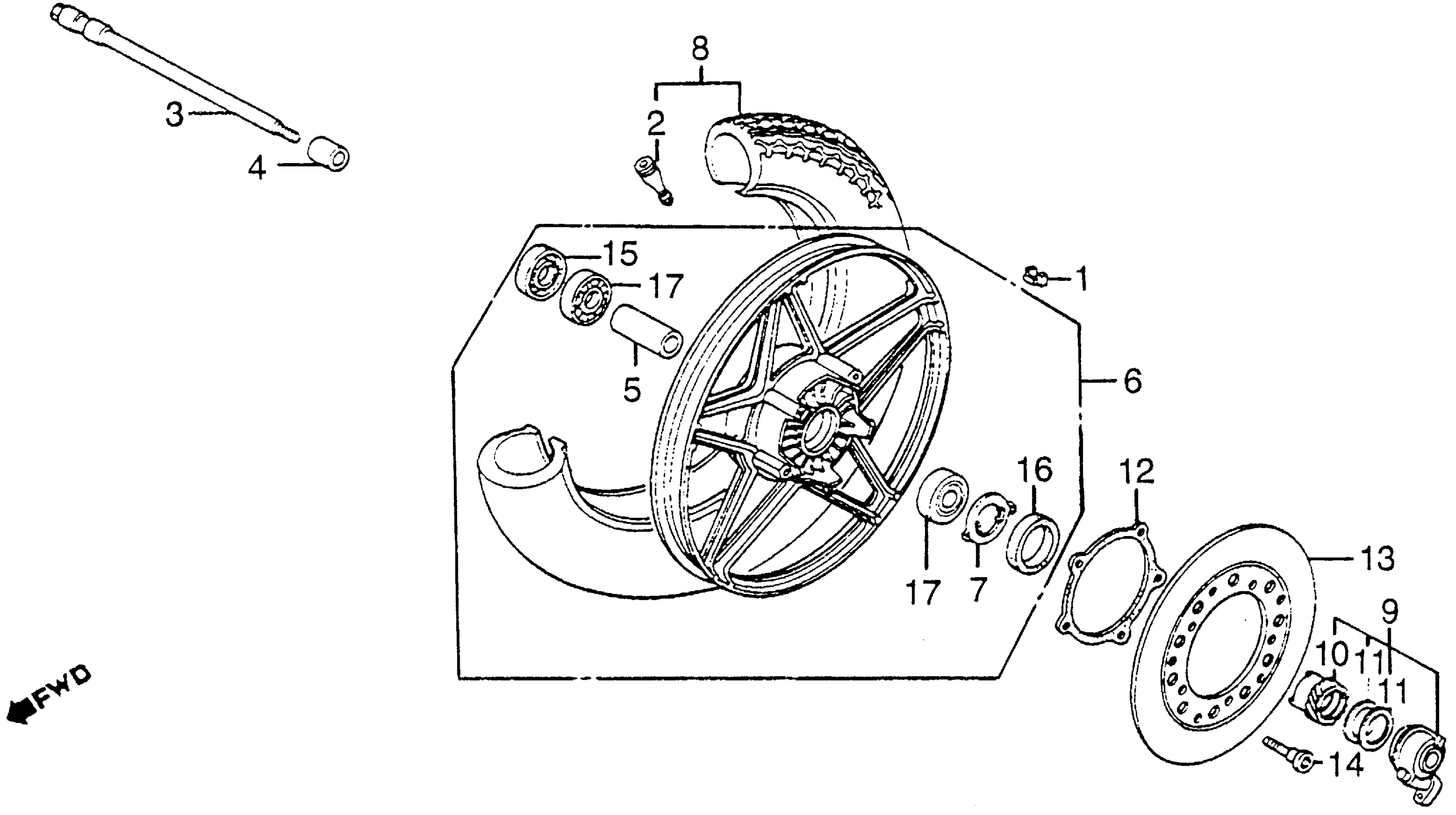Honda CB550SCA (83) NIGHTHAWK 550, JPN, VIN# JH2PC090-DM000023 FRONT WHEEL Diagram
