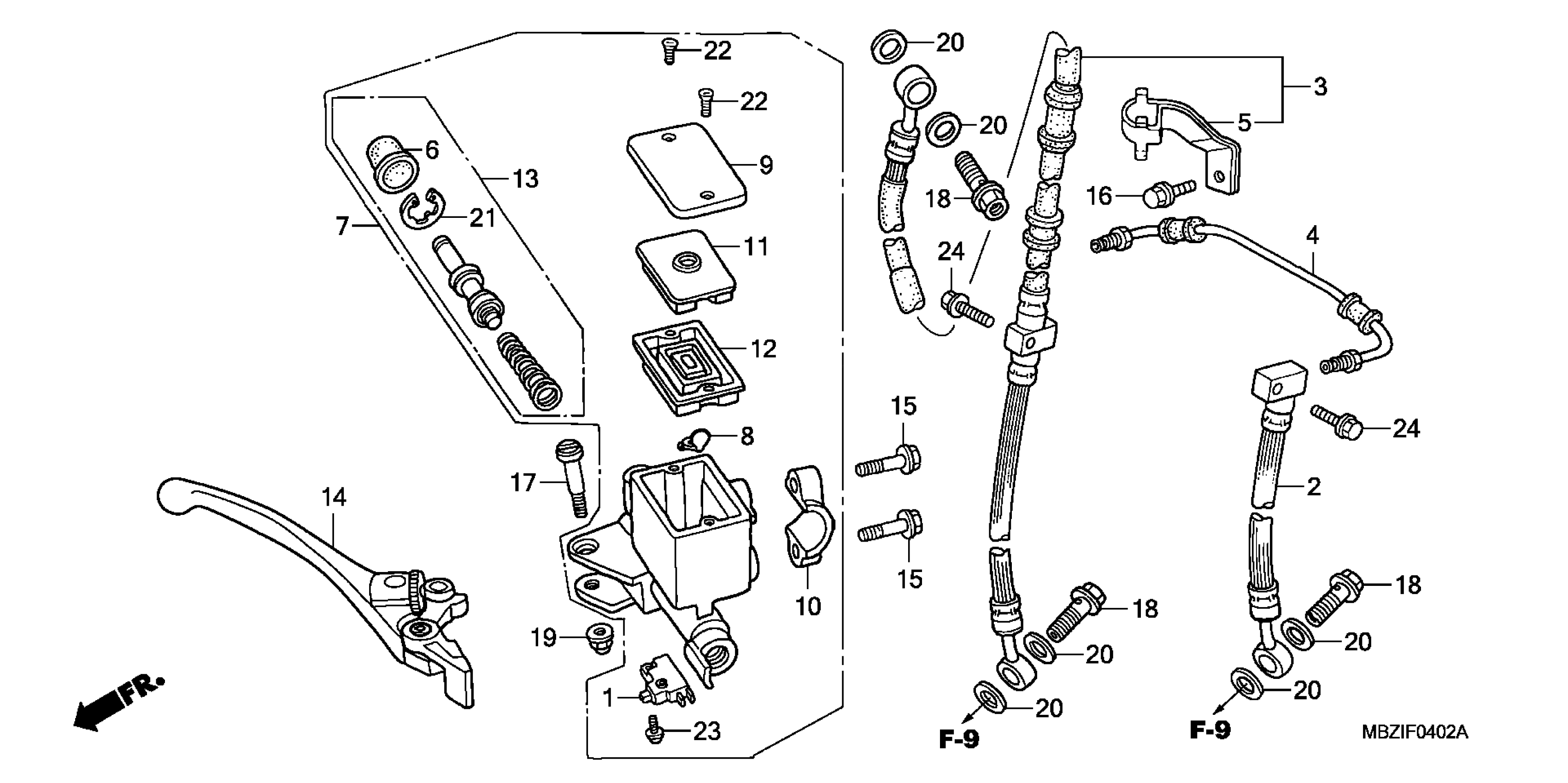 Honda CB600FA (04) 599, ITA, VIN# ZDCPC360-4F000001 TO ZDCPC360-4F099999 FRONT BRAKE MASTER CYLINDER (1) Diagram