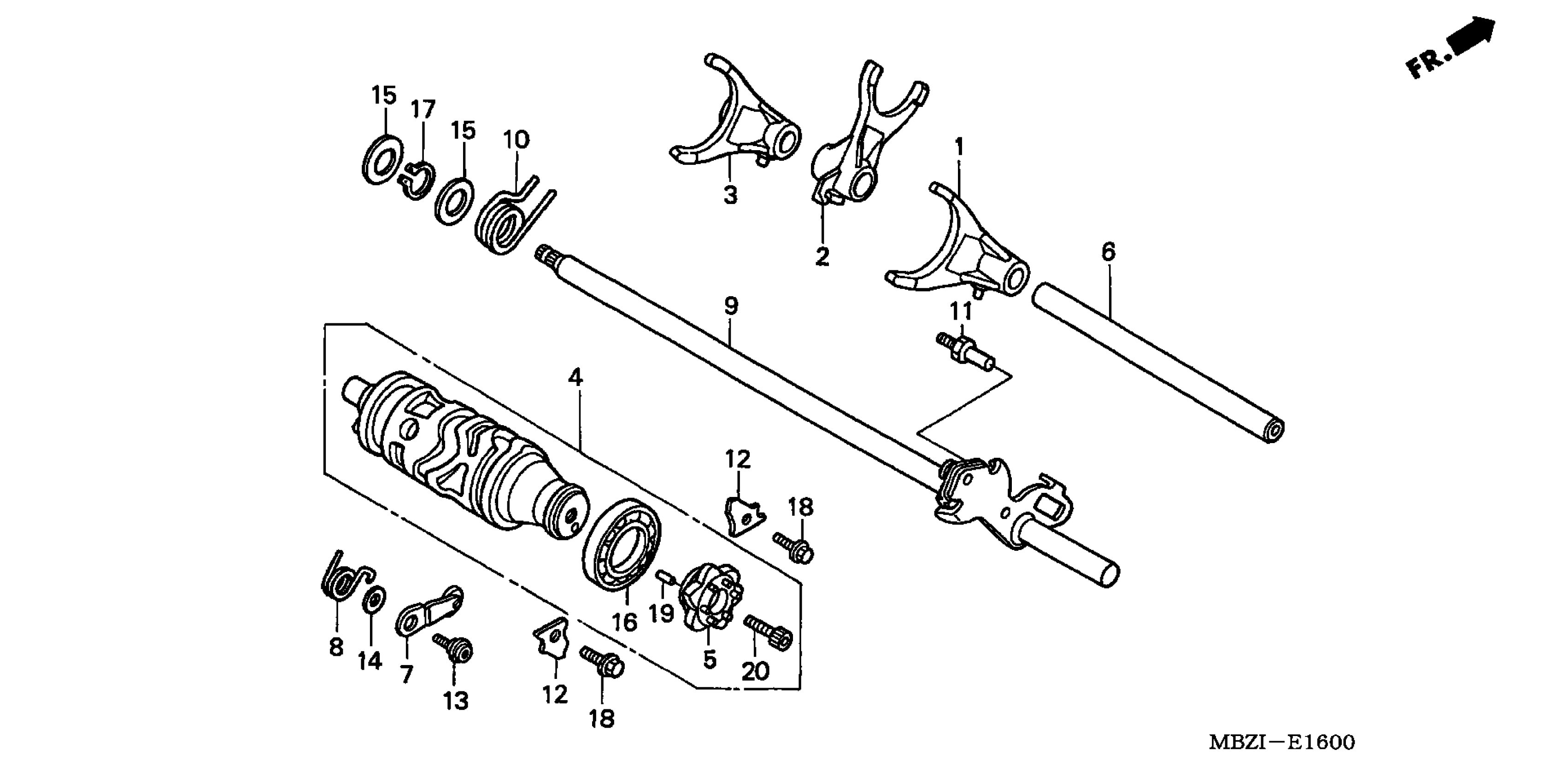 Honda CB600FA (06) 599, ITA, VIN# ZDCPC360-6F100001 GEARSHIFT DRUM Diagram