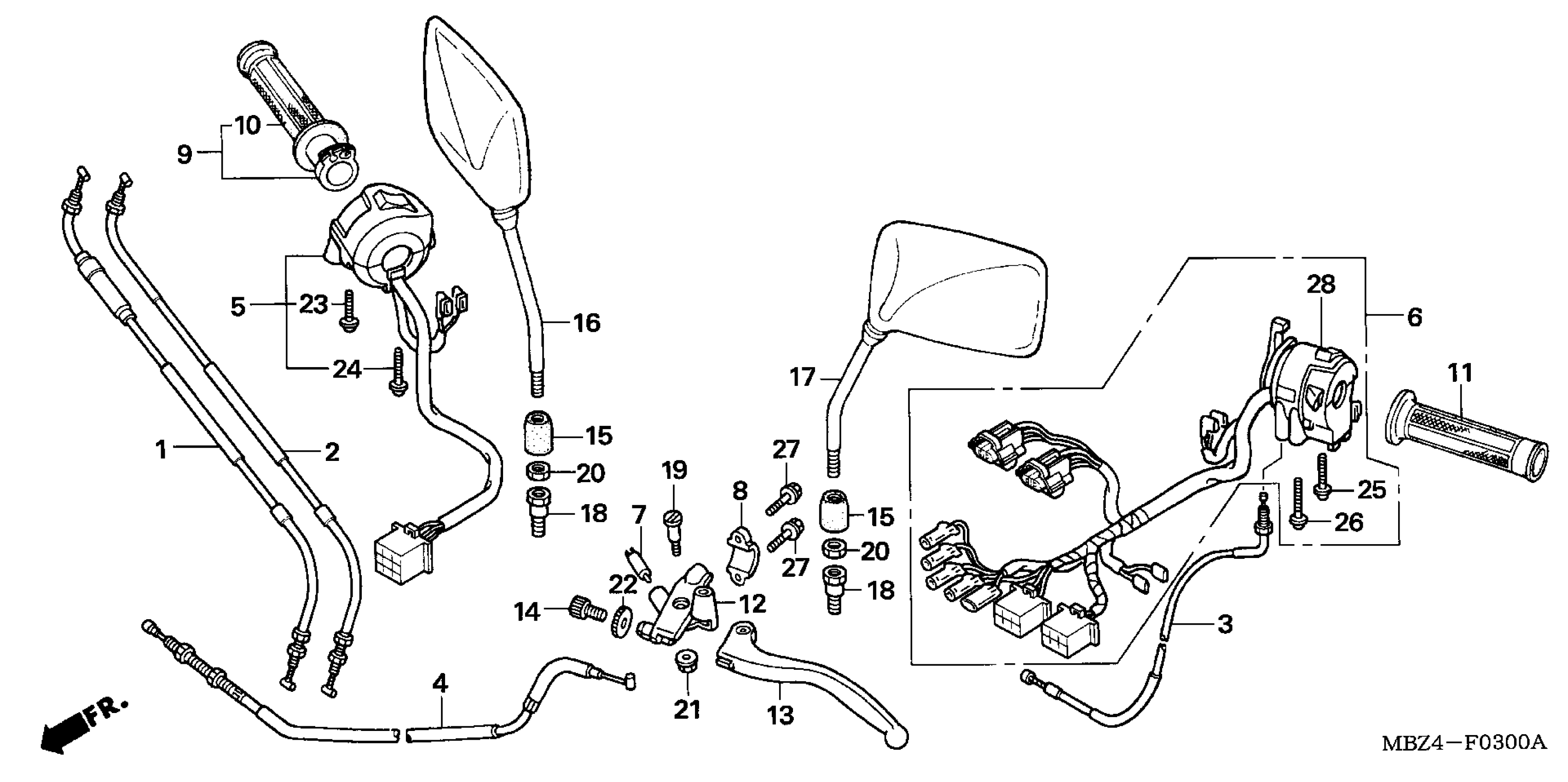 Honda CB600FA (06) 599, ITA, VIN# ZDCPC360-6F100001 HANDLE LEVER + SWITCH Diagram