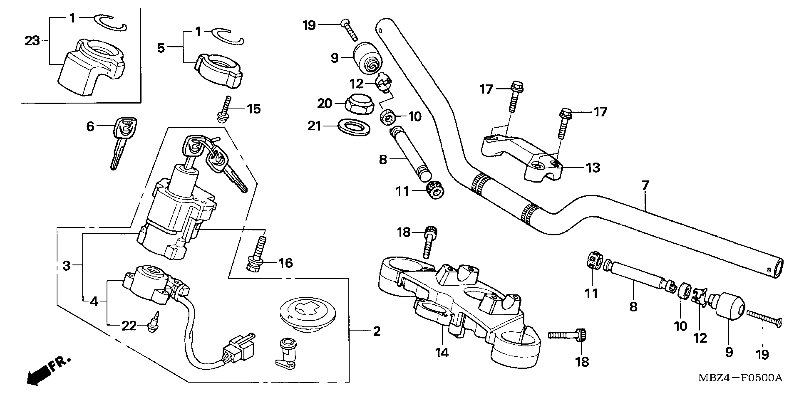 Honda CB600FA (06) 599, ITA, VIN# ZDCPC360-6F100001 HANDLEBAR + TOP BRIDGE Diagram