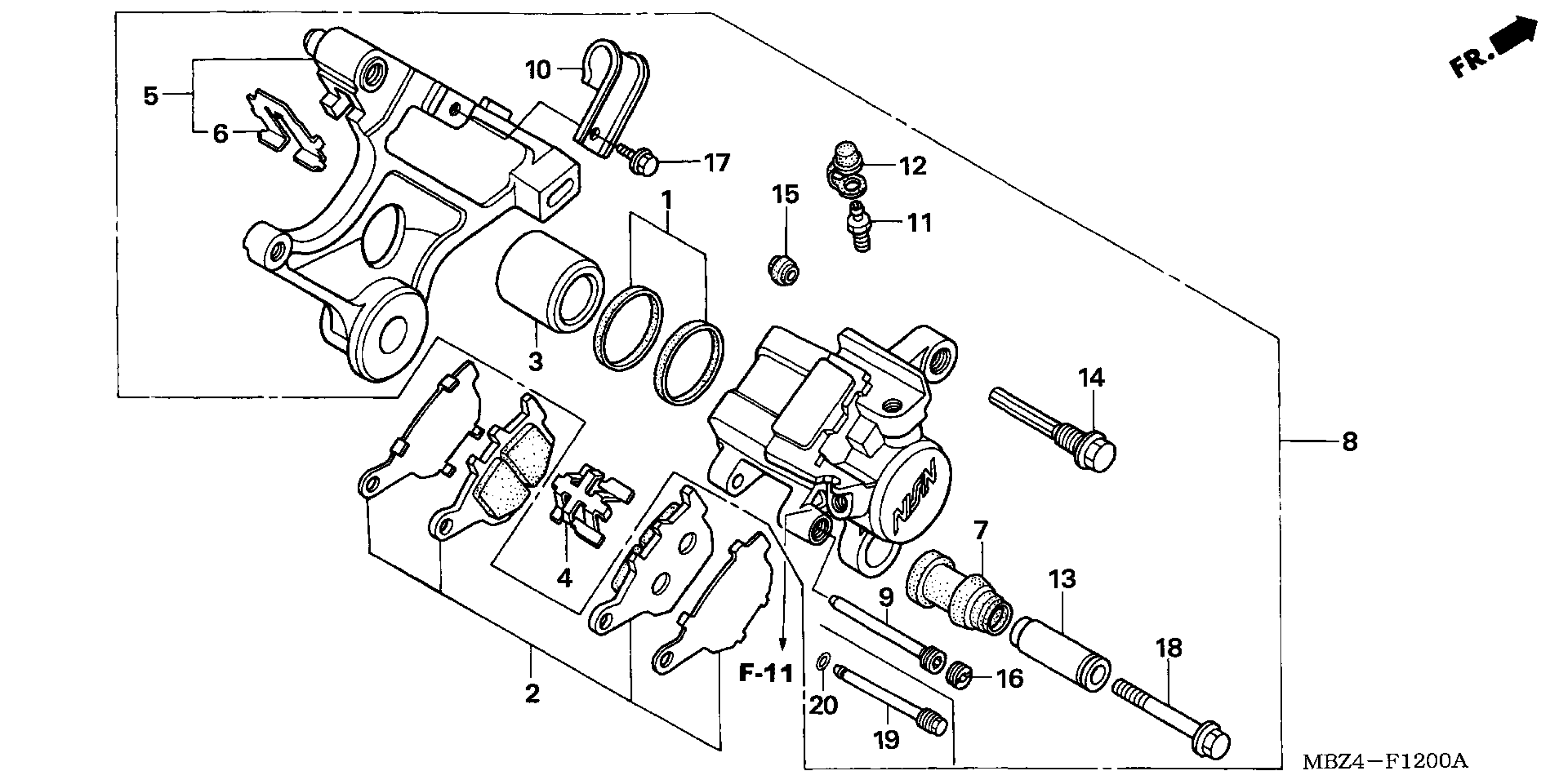 Honda CB600FA (06) 599, ITA, VIN# ZDCPC360-6F100001 REAR BRAKE CALIPER Diagram