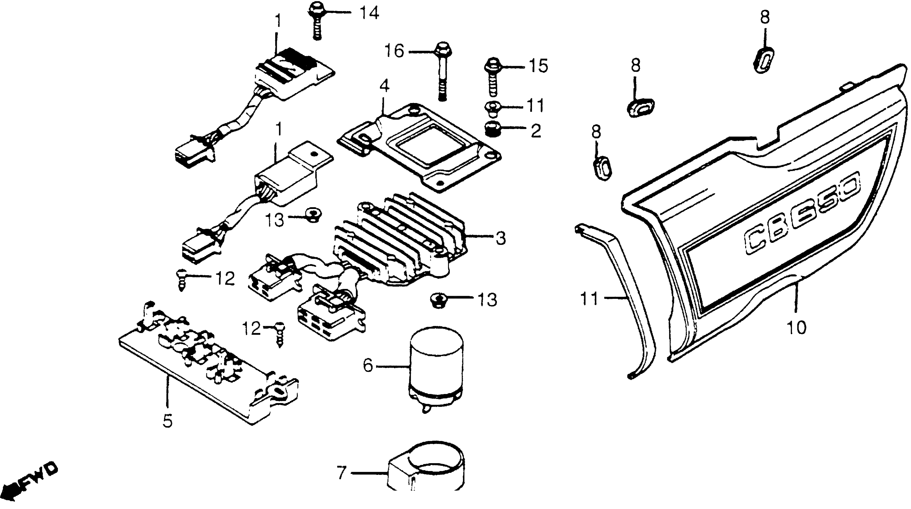 Honda CB650A (79) MOTORCYCLE, JPN, VIN# RC03-2002472 LEFT SIDE COVER + RECTIFIER Diagram