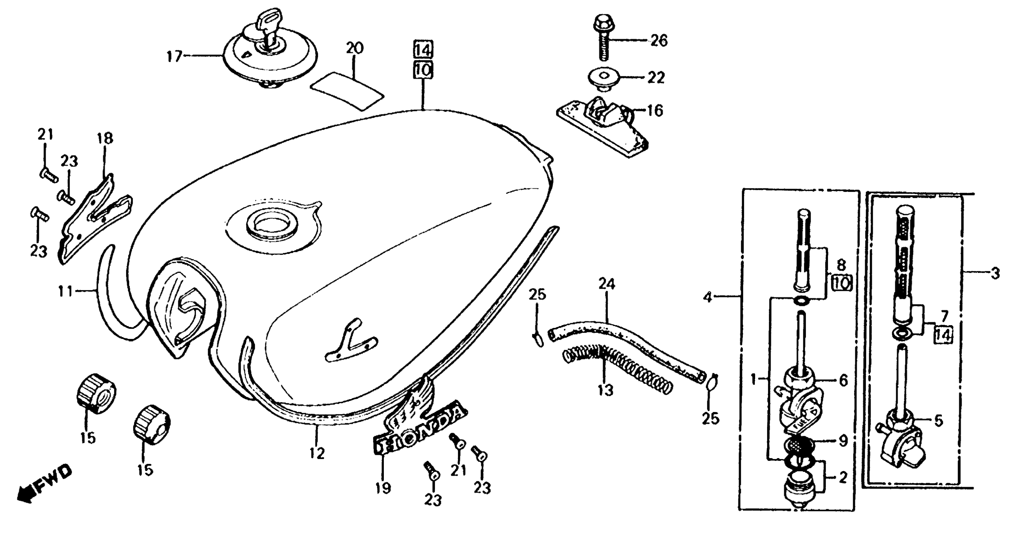 Honda CB650A (82) MOTORCYCLE, JPN, VIN# JH2RC050-CM300003 FUEL TANK Diagram