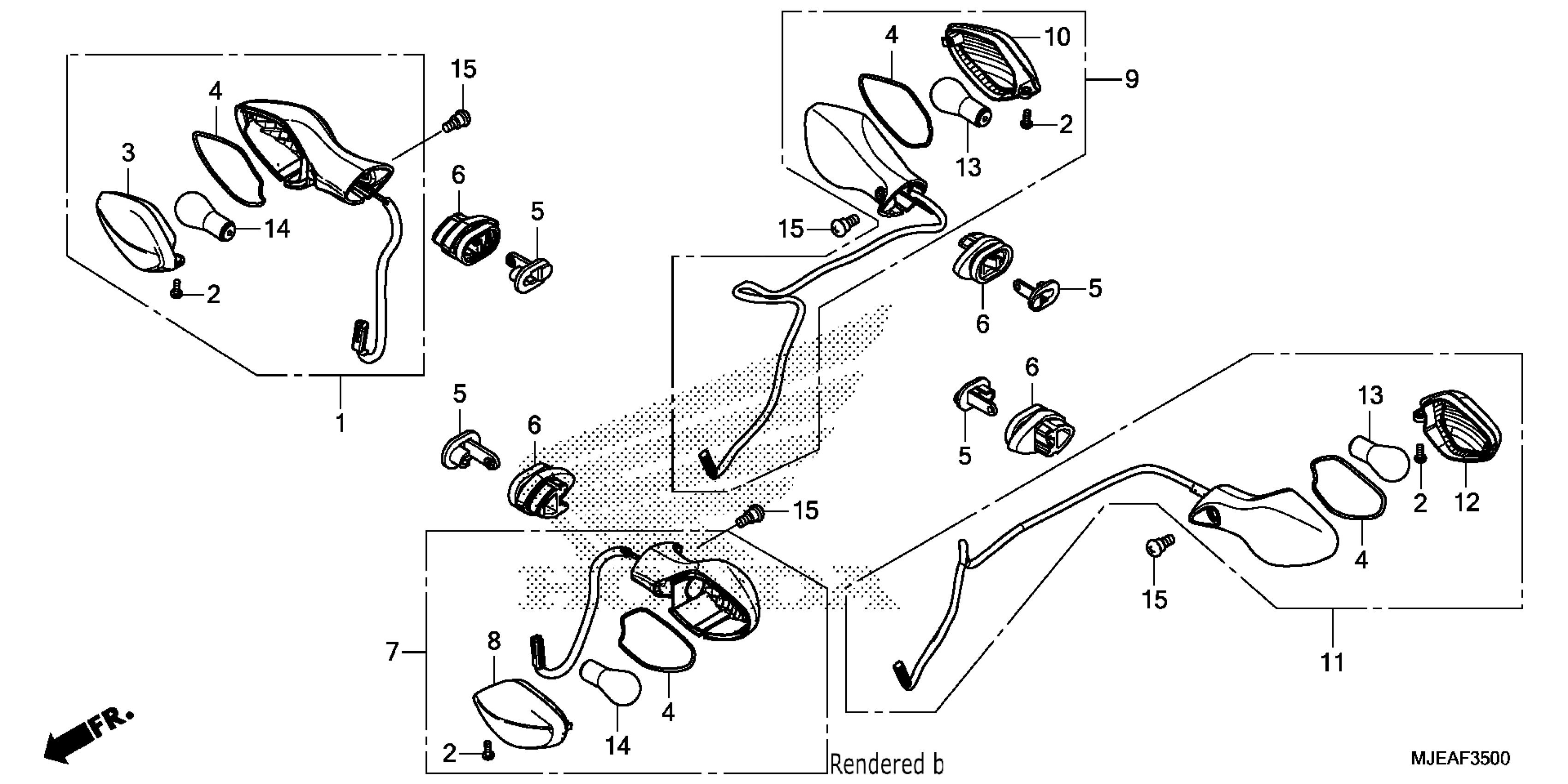 TURN SIGNAL ASSY., L. RR. (12V 21W) | Use up to Frame SN J5000142. This part replaces 33650-MJE-A02.