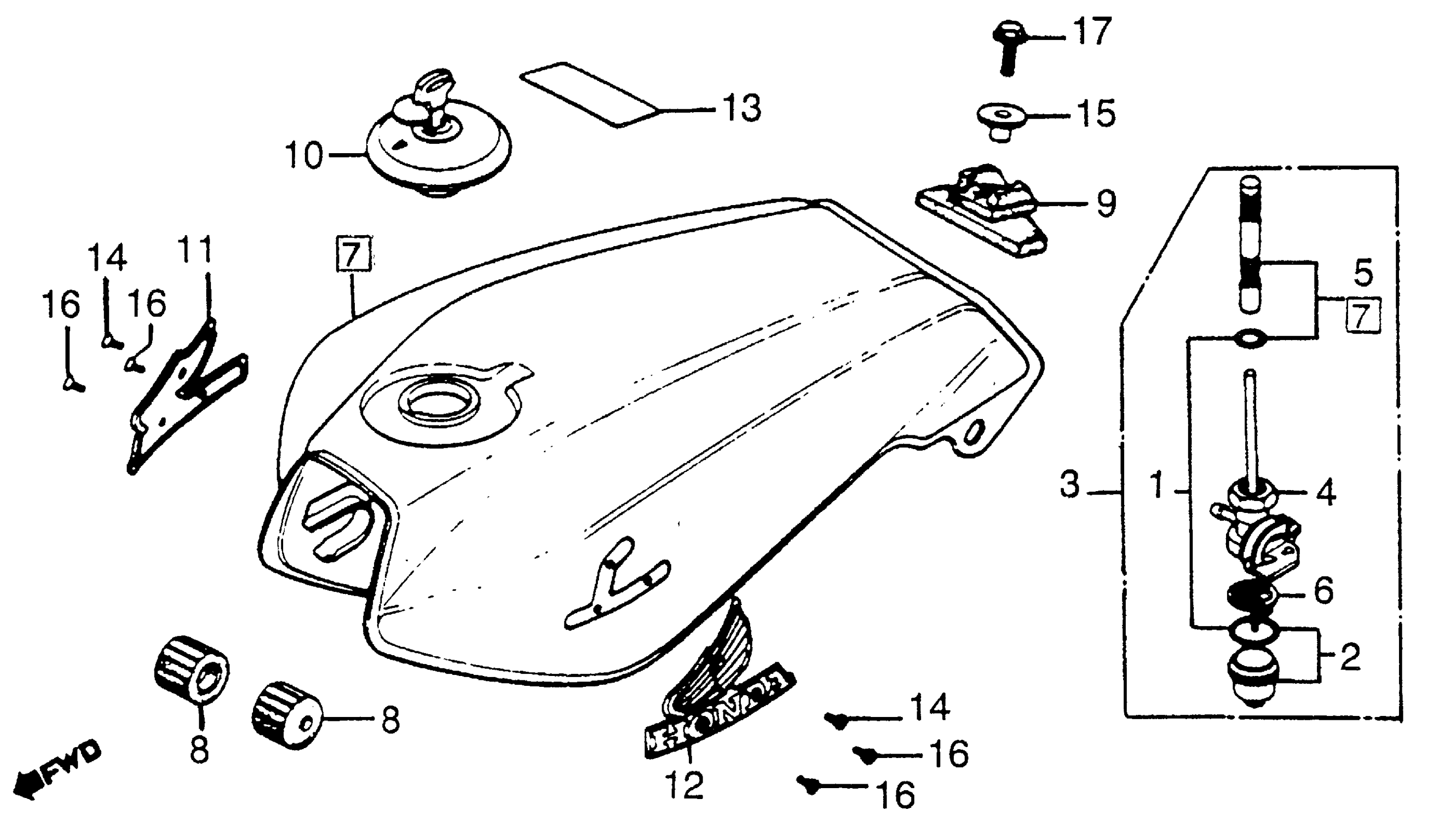 Honda CB650SCA (82) NIGHTHAWK 650, JPN, VIN# JH2RC080-CM000013 TO JH2RC080-CM019135 FUEL TANK Diagram