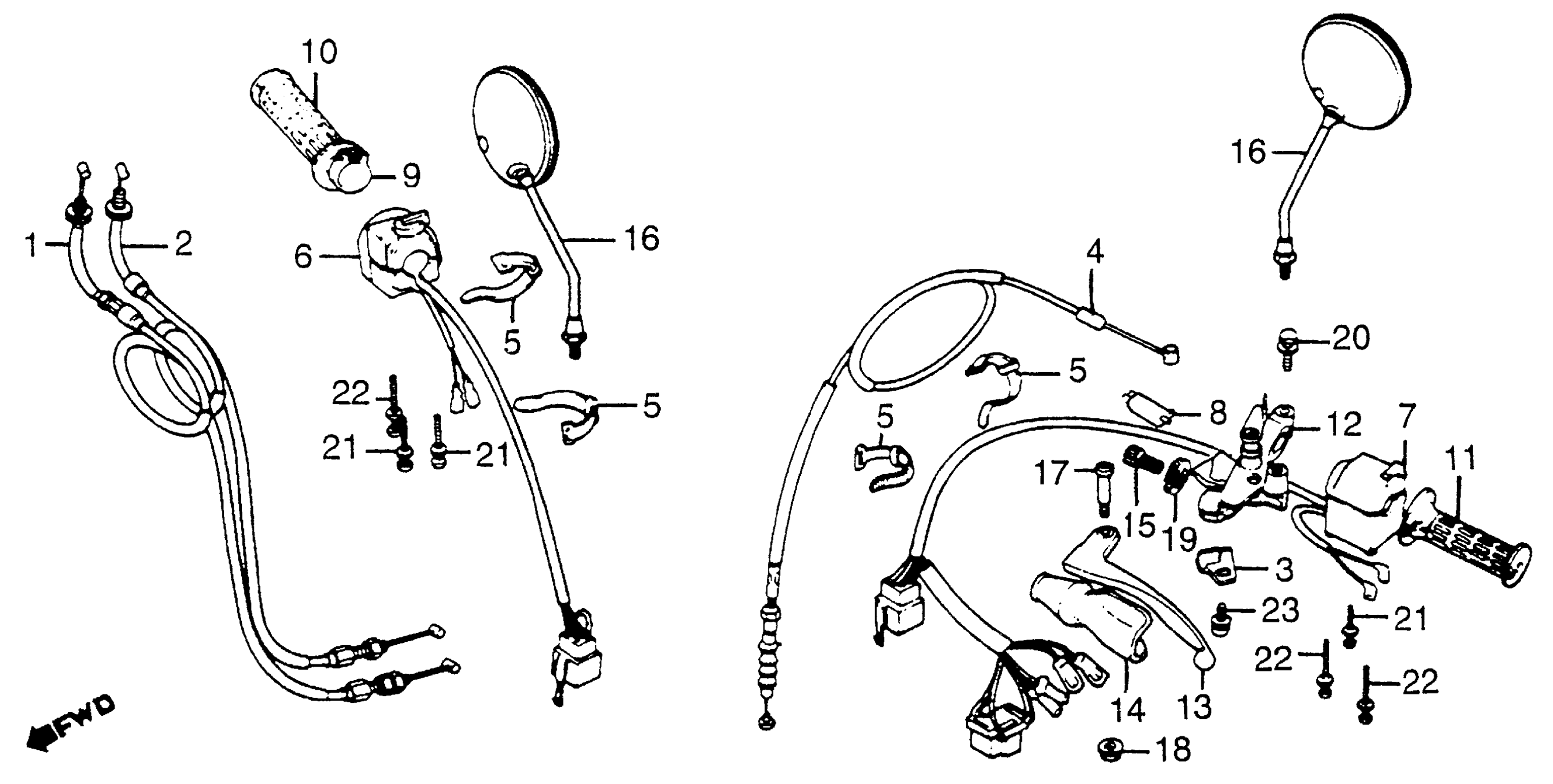 Honda CB650SCA (82) NIGHTHAWK 650, JPN, VIN# JH2RC080-CM000013 TO JH2RC080-CM019135 HANDLE LEVER + SWITCH + CABLE Diagram