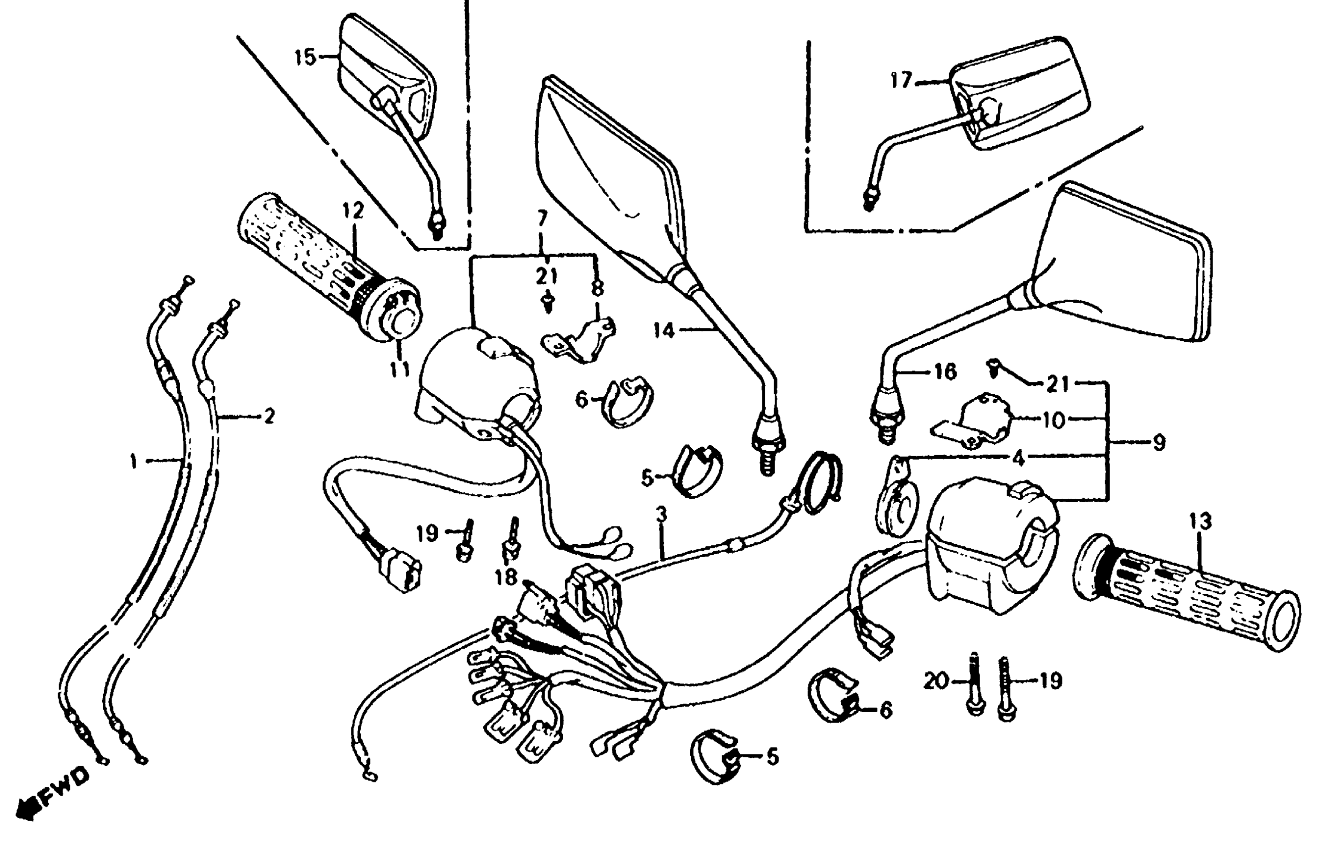Honda CB700SCA (84) NIGHTHAWK S, JPN, VIN# JH2RC200-EM000011 TO JH2RC200-EM011128 SWITCHES + CABLES Diagram