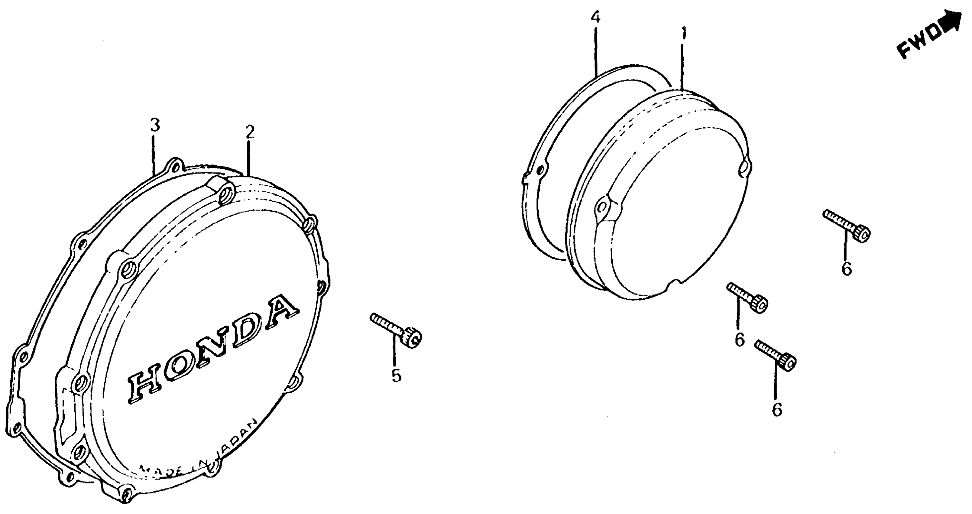 Honda CB700SCA (86) NIGHTHAWK S, JPN, VIN# JH2RC200-GM200004 TO JH2RC200-GM203101 CLUTCH COVER + RIGHT CRANKCASE COVER Diagram