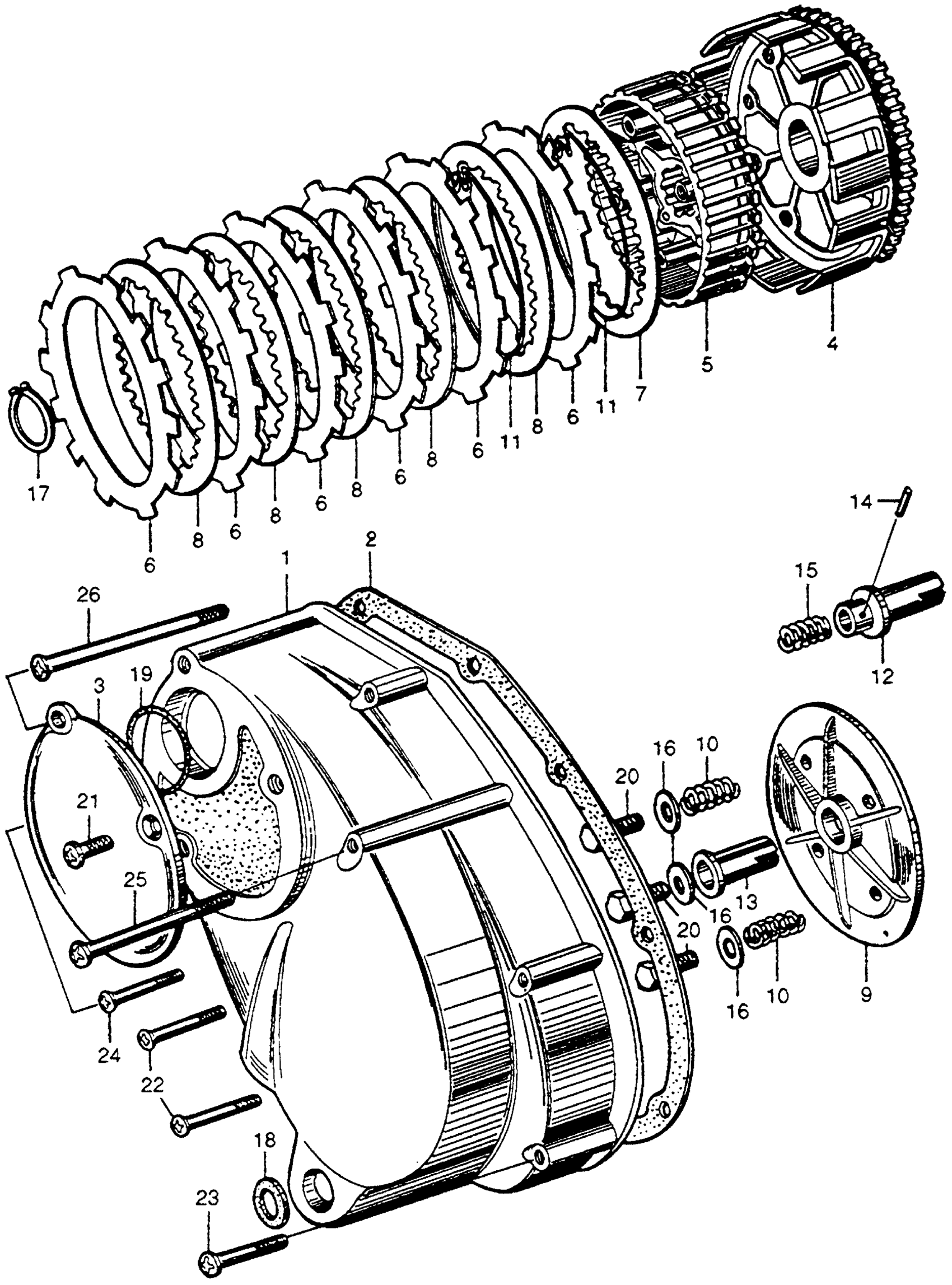 Honda CB72A MOTORCYCLE, JPN, VIN# CB72-100001 CLUTCH + LEFT CRANKCASE COVER Diagram