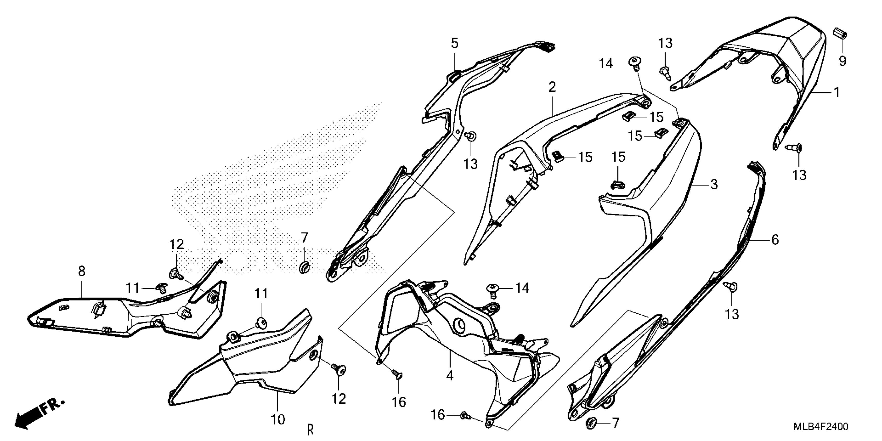 Honda CB750A3AC (25) MOTORCYCLE, JPN, VIN# JH2RH240-SK000001 TO JH2RH240-SK099999 REAR COWL Diagram