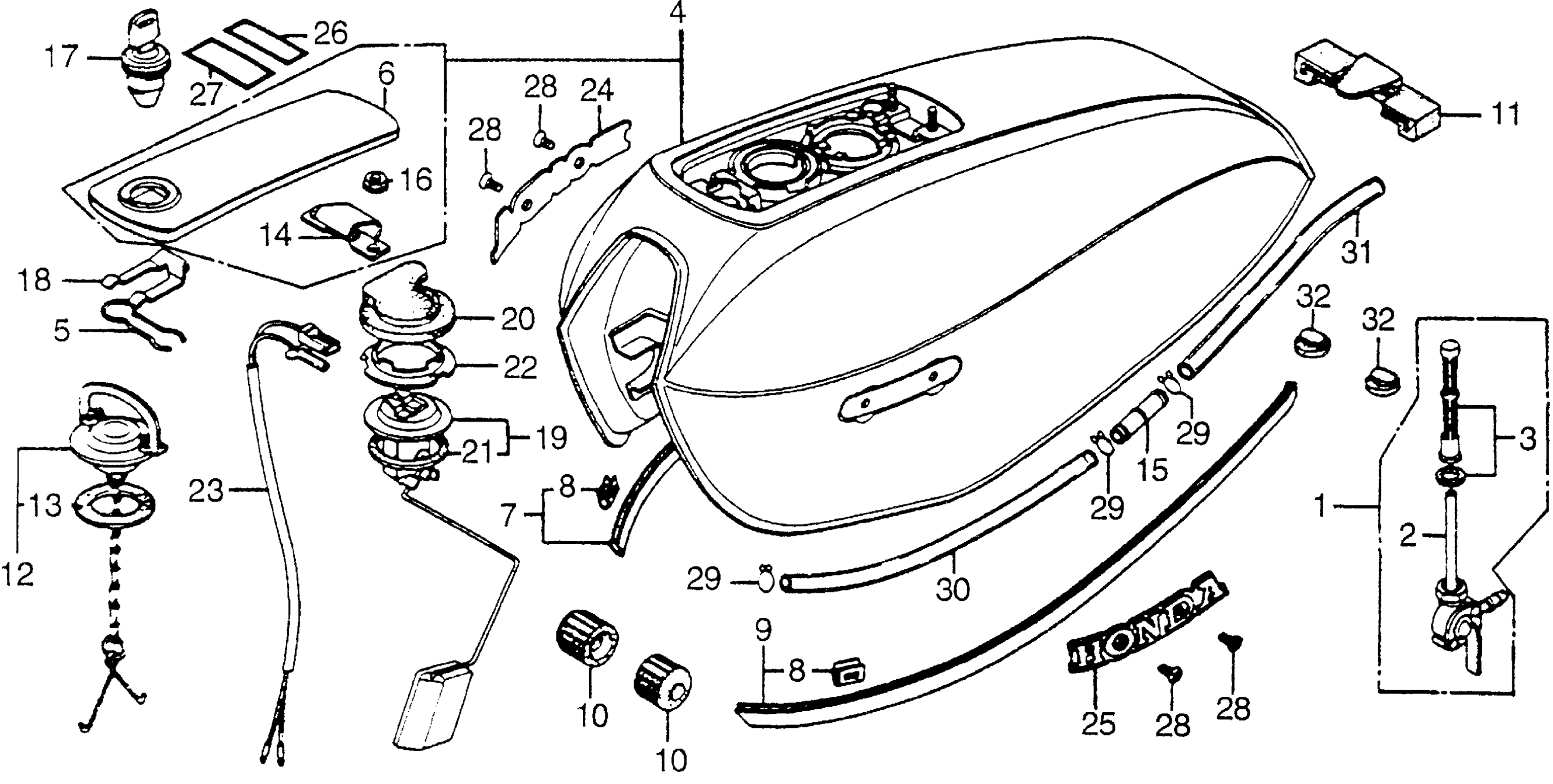 Honda CB750AA (76) 750 HONDAMATIC, JPN, VIN# CB750A-7000001 TO CB750A-7007331 FUEL TANK Diagram